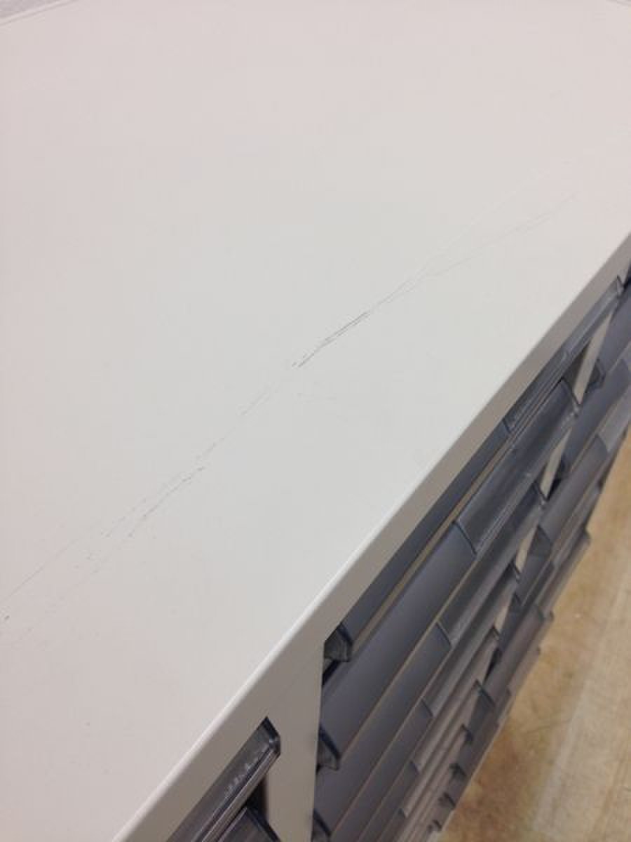 - 目立つ箇所あり傷・凹みが多数、深い傷・凹みが一部ある。(例、天板、正面、背部、サイド部分にある。)