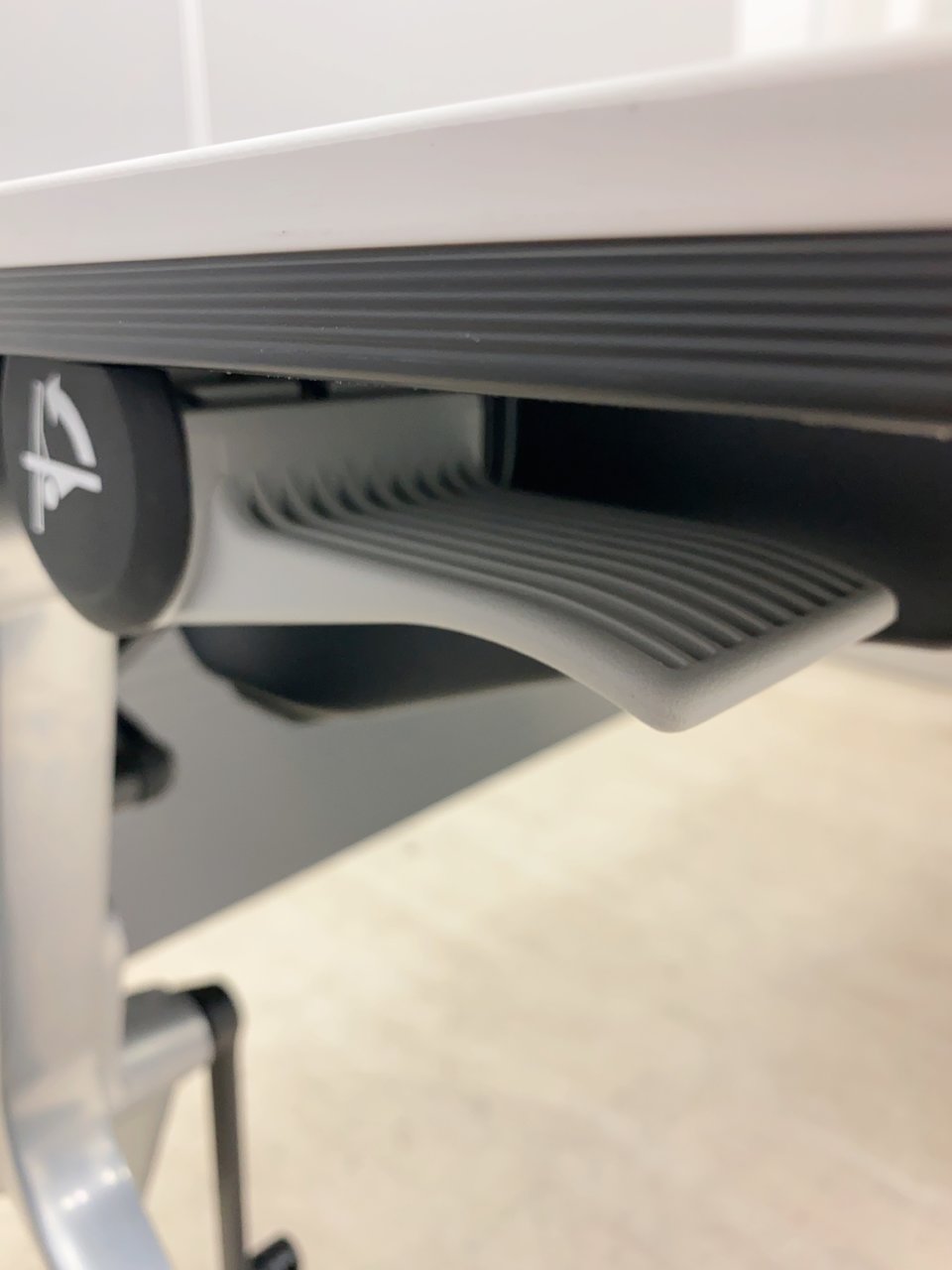 天板の上げ下げは、天板裏のレバーで簡単に片手で行うことができますから