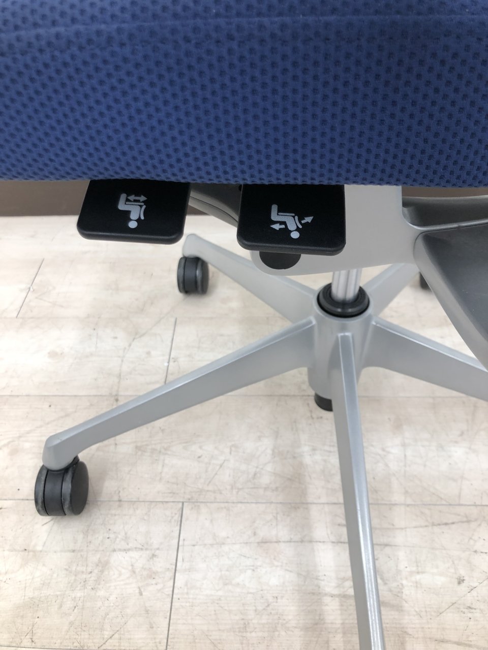 座面の高さや前後などの基本的な調整レバーが座面裏の前方に集約されており、姿勢を変えずに調節ができます。