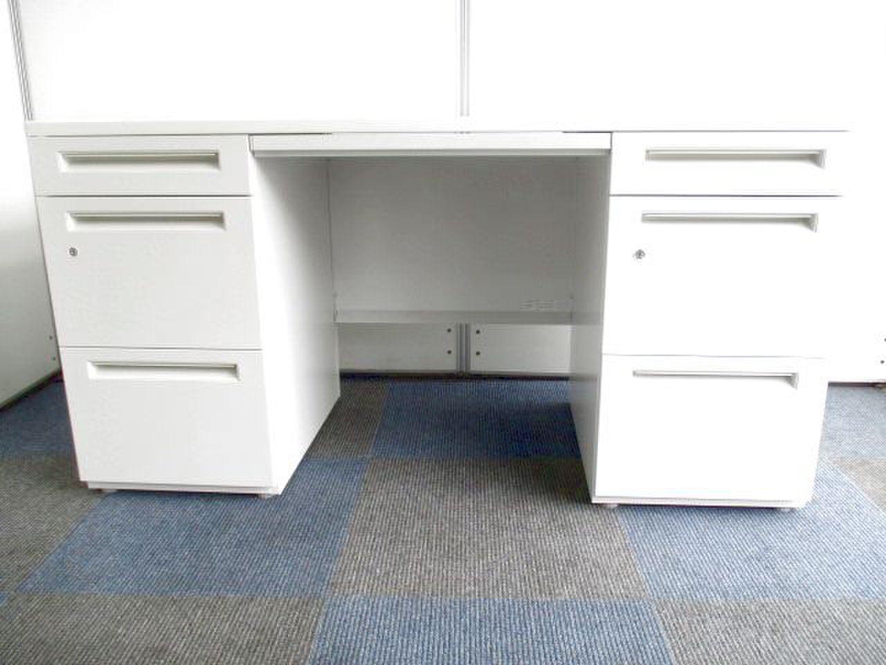 国内メーカー製 W1400mm両袖机 本体ホワイト ※高さ700mm