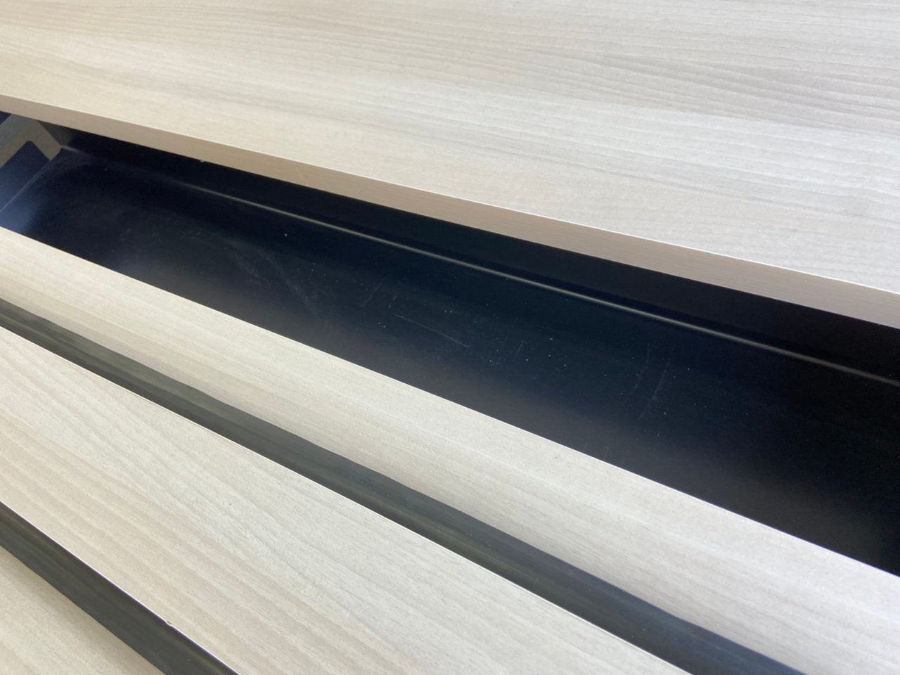 - 若干あり黄ばみ・変色が一部ある。(例、天板、幕板、棚板、サイド部分、脚部等にある。)