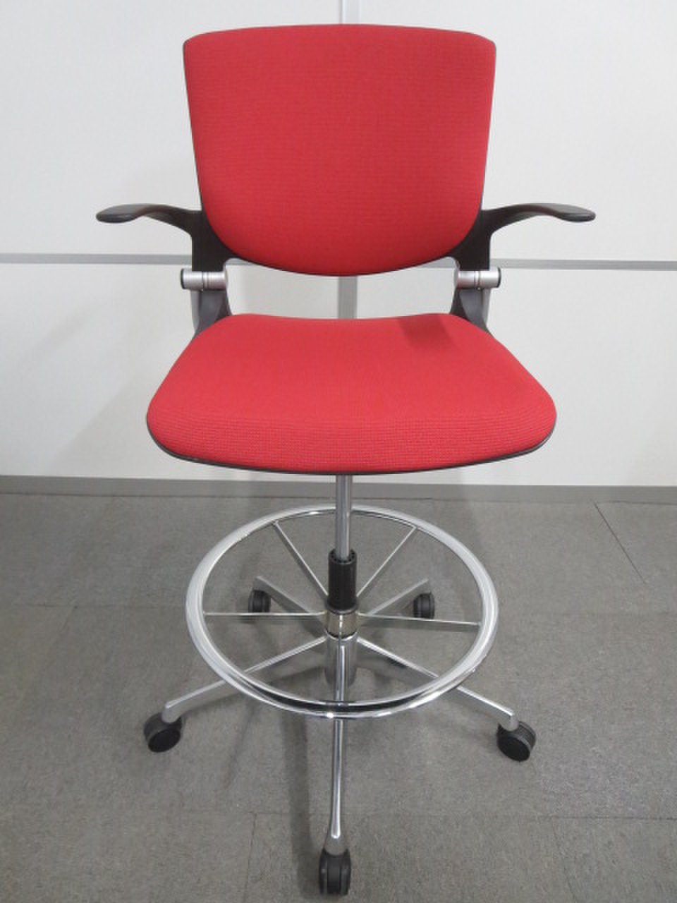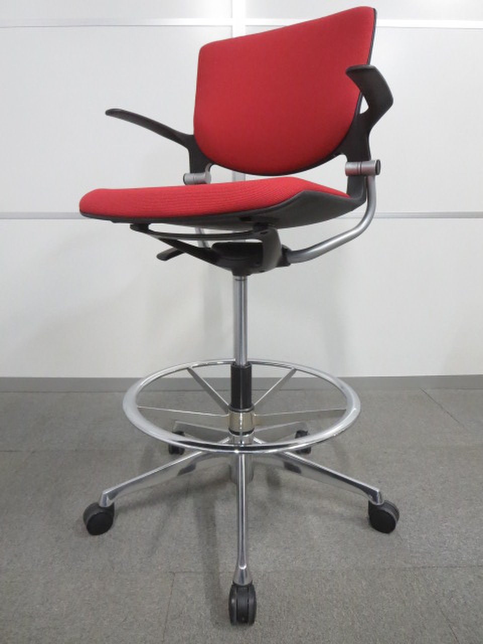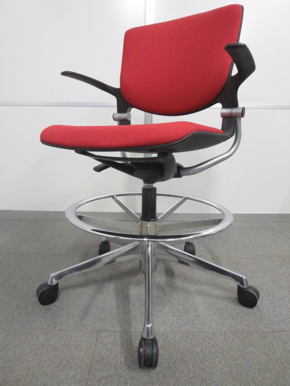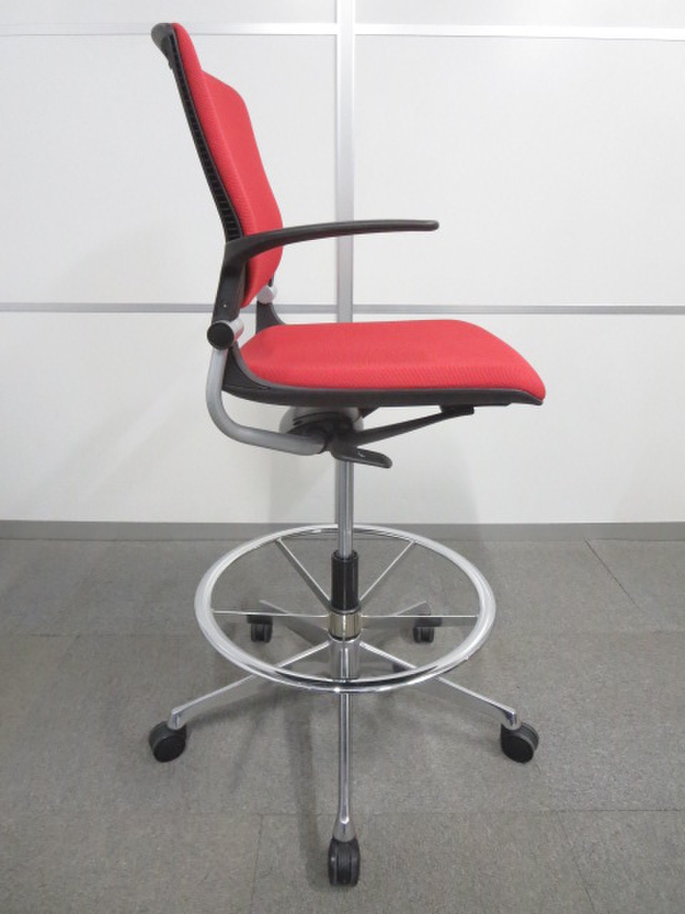 【スタイリッシュなデザイン!】■オカムラ製 グラータ(Grata)■ミーティングチェア・ハイタイプ レッド【作業に適したハイチェア!】座面高さ567~767mmサーキュラーバリューCO2削減量の算出について