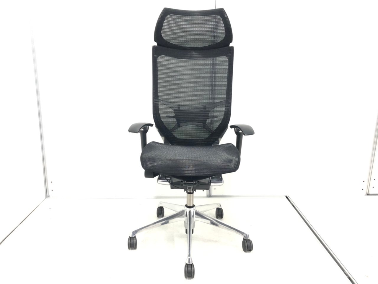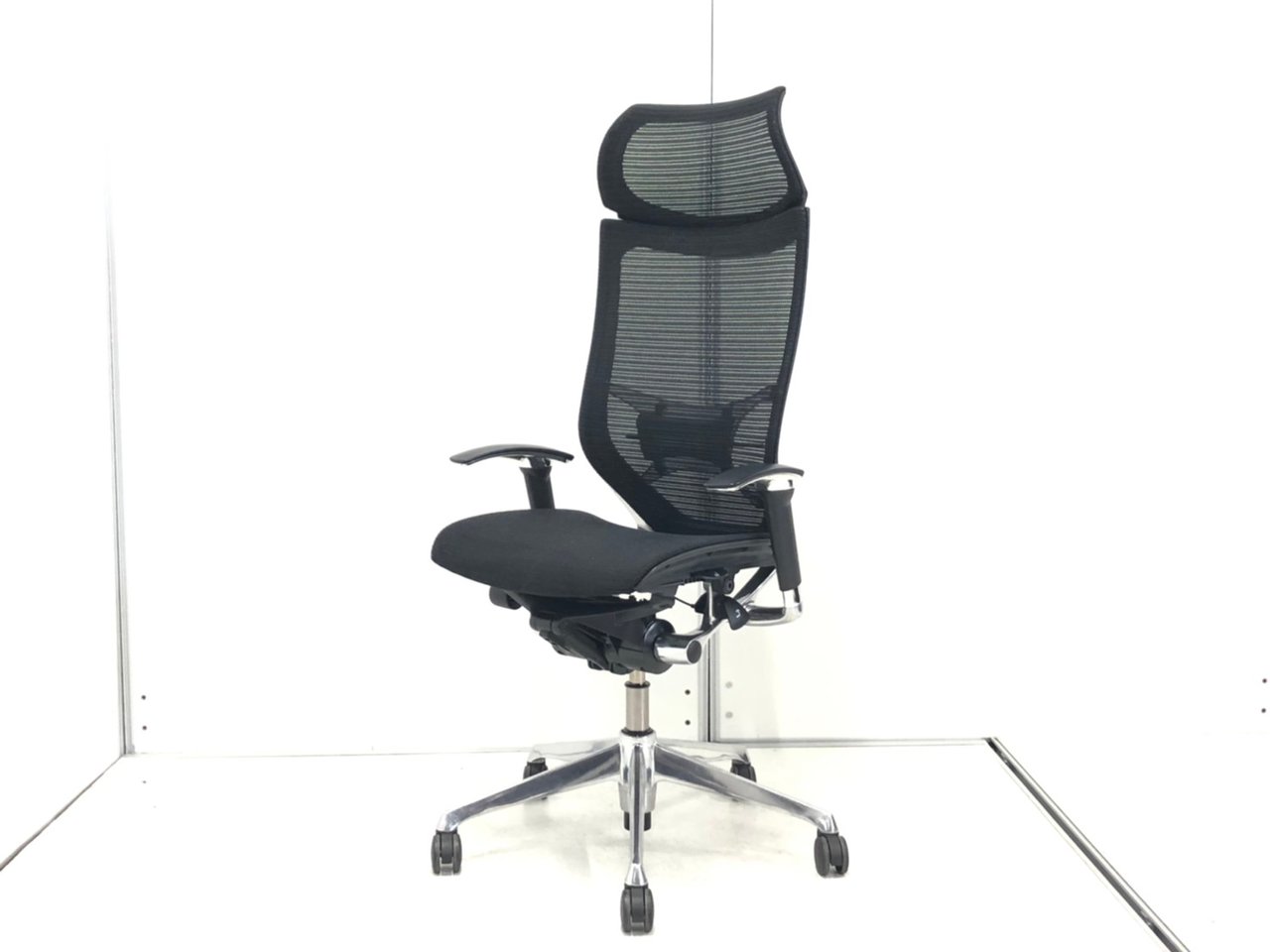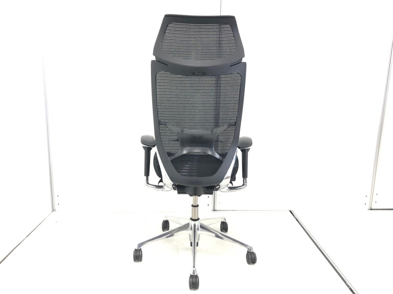 【オフィスの執務室、会議室におすすめ!】■オカムラ(okamura)製 バロン(Baron)チェア 肘付き ハイバック ■背・座面メッシュ ■可動肘 ■ヘッドレスト付き ■ブラック【硬めの座面が大人気!国産メッシュチェアの代表格!】