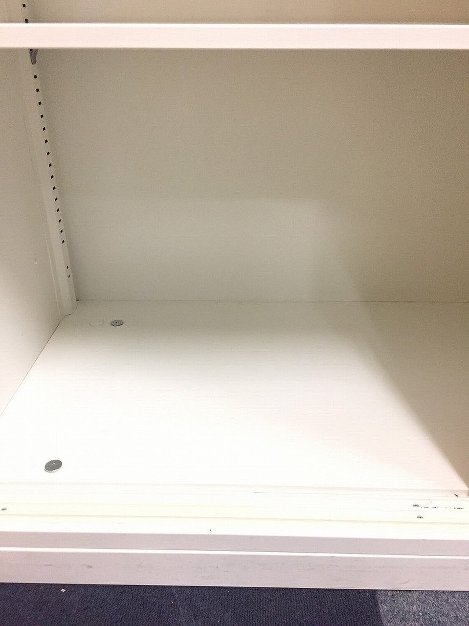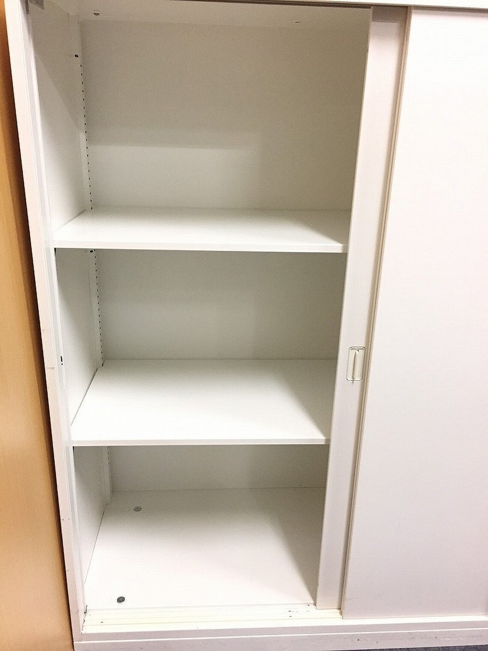 スライド式の扉のため導線を邪魔しません!使い勝手抜群の2枚引き違い書庫が入荷! ■オカムラ/レクトライン/ホワイト 2枚引き戸