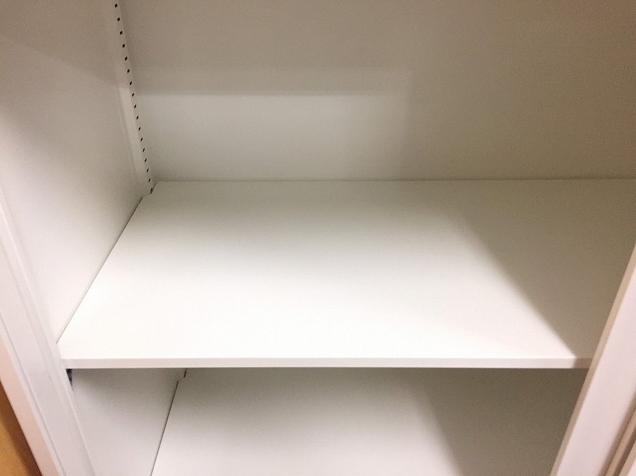 2枚引き戸書庫 オカムラ レクトライン 鍵付き シリンダー錠 ホワイト 天板無し スライド式の扉のため導線を邪魔しません