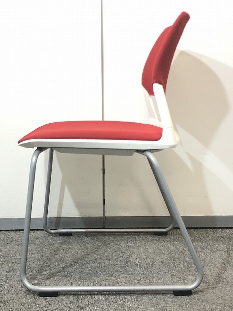 【しっかりクッションで座りやすい!】■コクヨ製 スタッキングチェア 座:レッド 背:ホワイト ■フローリングでも使いやすい!ゴムキャスタータイプ!