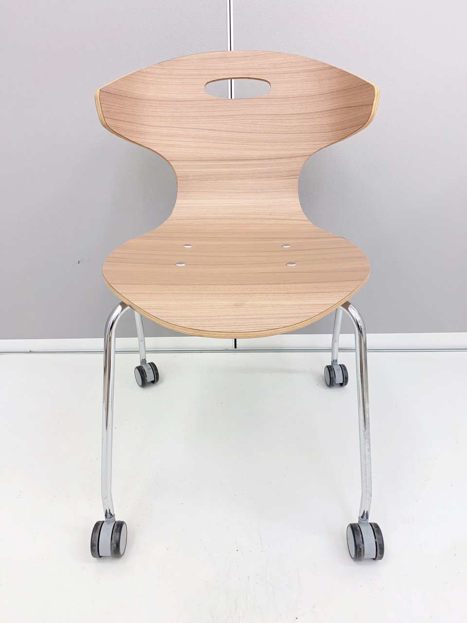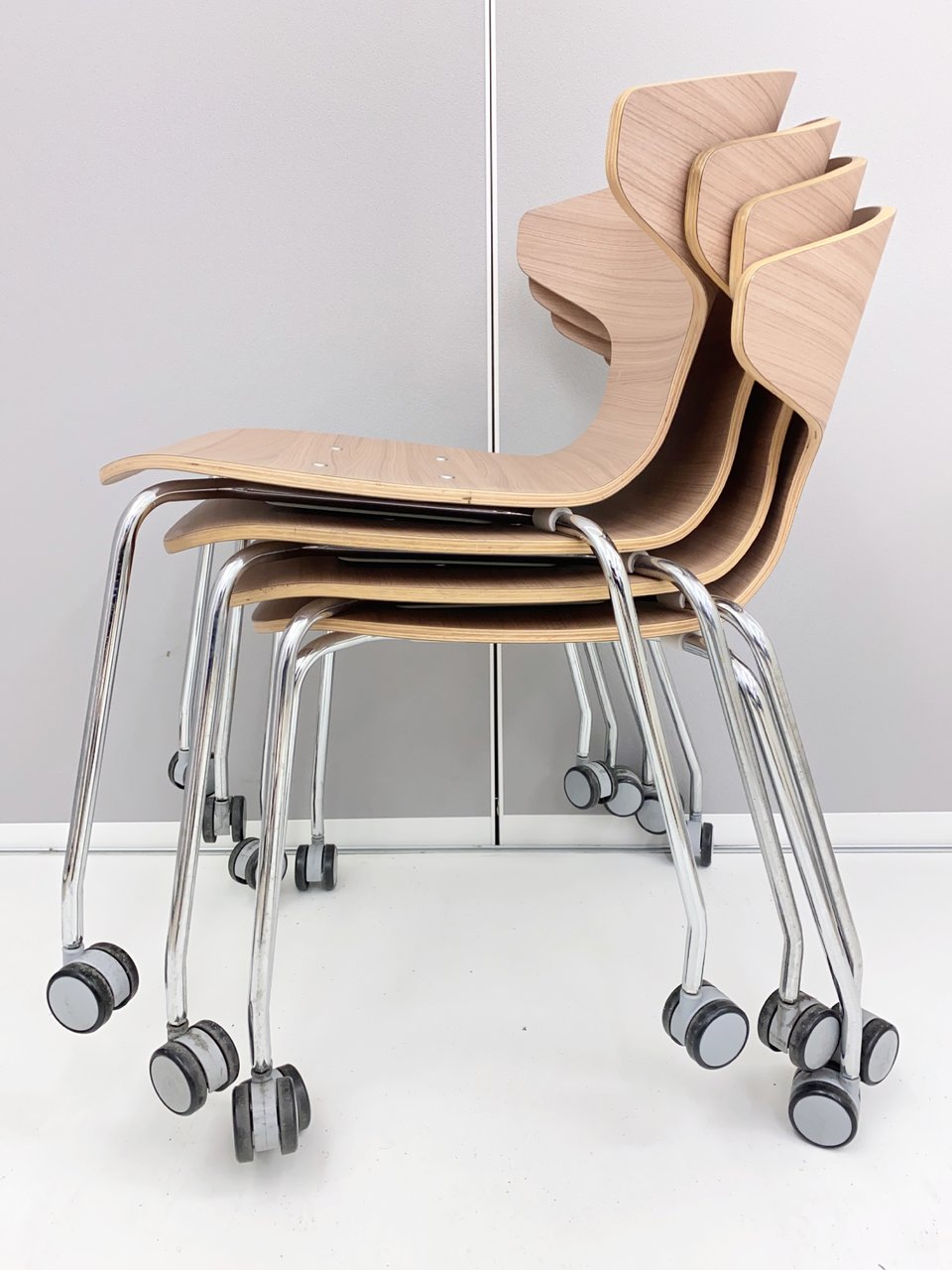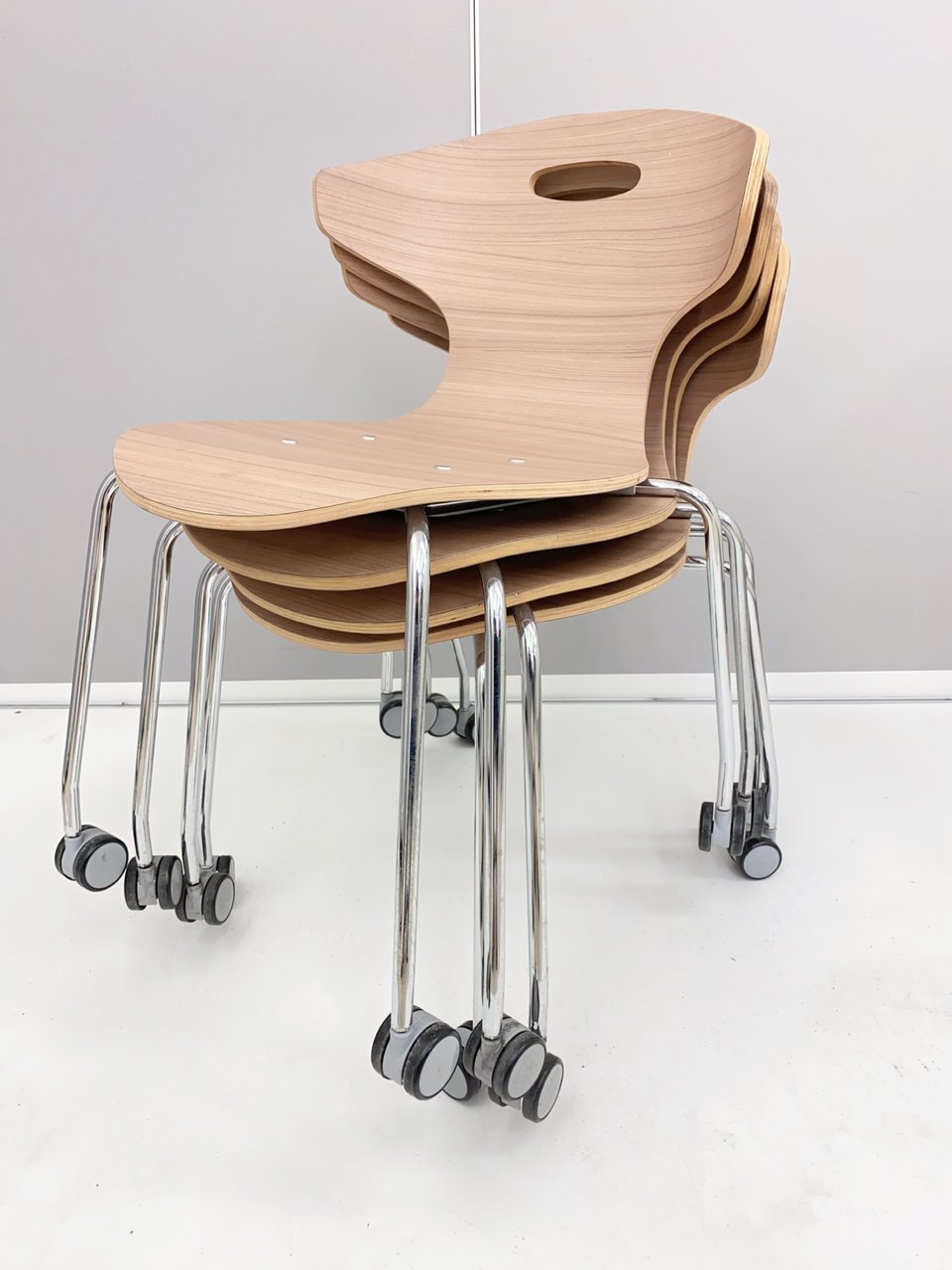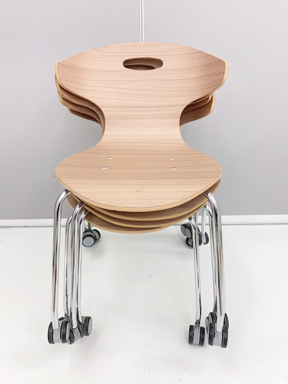 【お洒落木目】スタック可能10脚入荷◆移動楽々キャスター付き- 春日部・越谷店