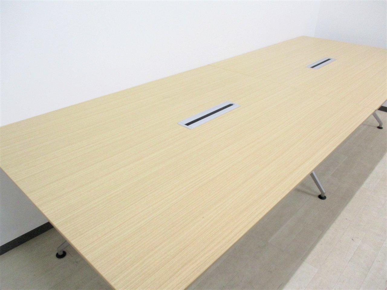 【会議室だけでなく休憩室でも!6~8名様対応・大型テーブル】■イトーキ(ITOKI) DDDシリーズ ミーティングテーブル 会議テーブル 幅2400×奥行900mm ■木目ナチュラル天板 脚シルバー色 オフィスバスターズ東大阪店