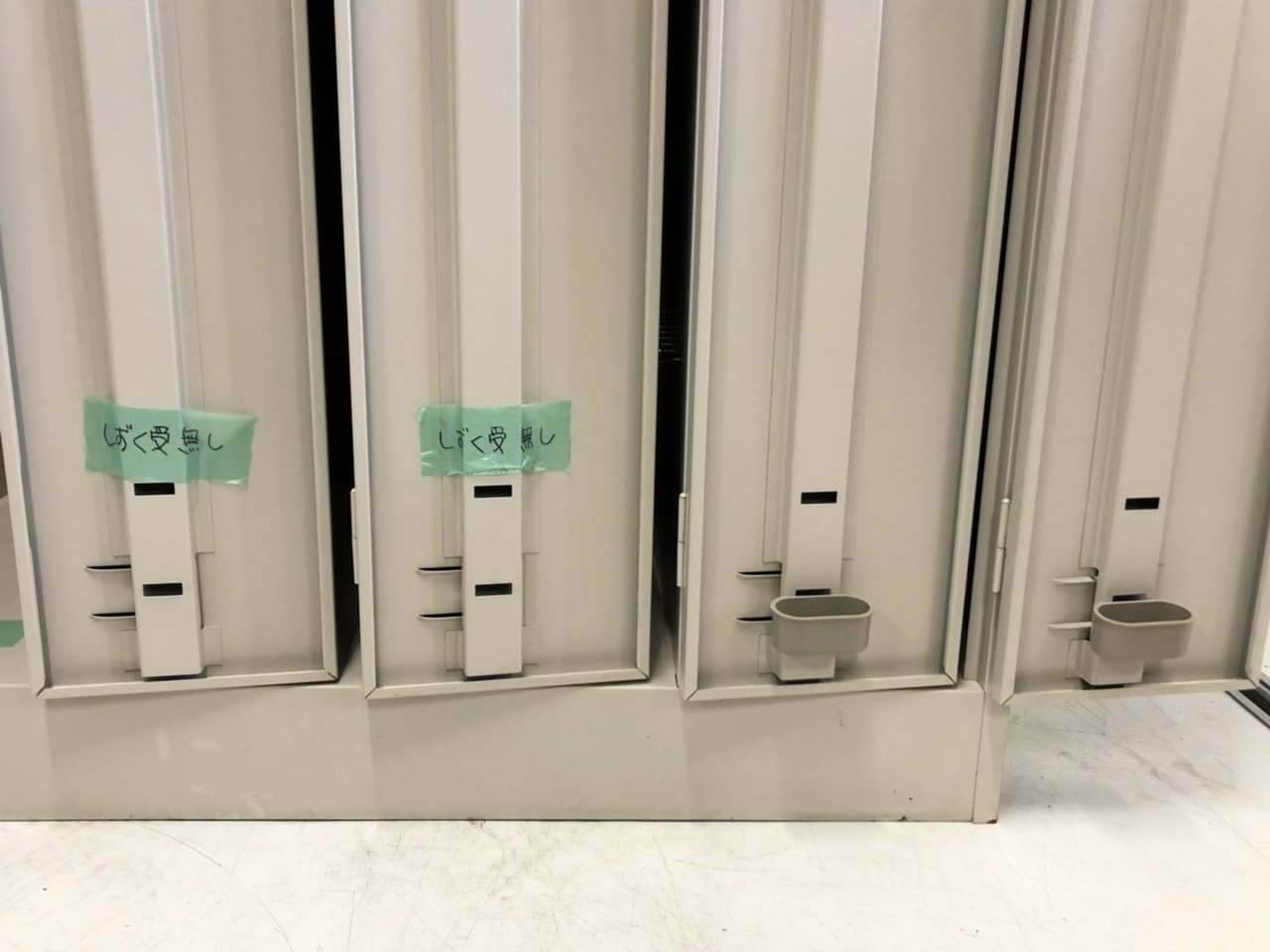 - 一部不具合あり扉の開閉不可、施錠不可といったそのロッカーの本来の効用を果たすための機能以外の一部が使用不可な状態※扉の開閉がしづらい等がある。