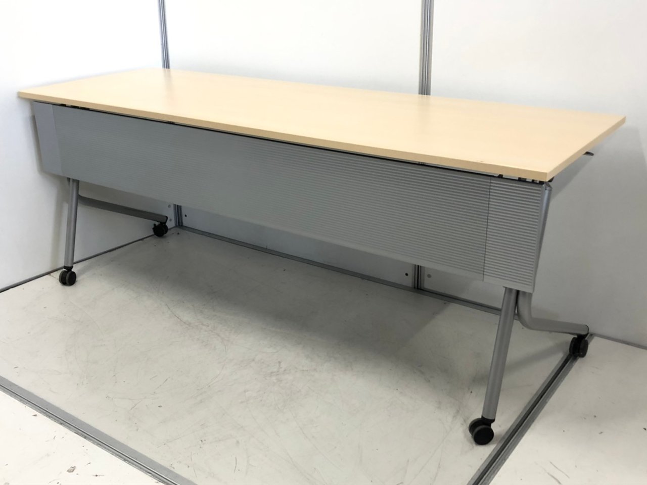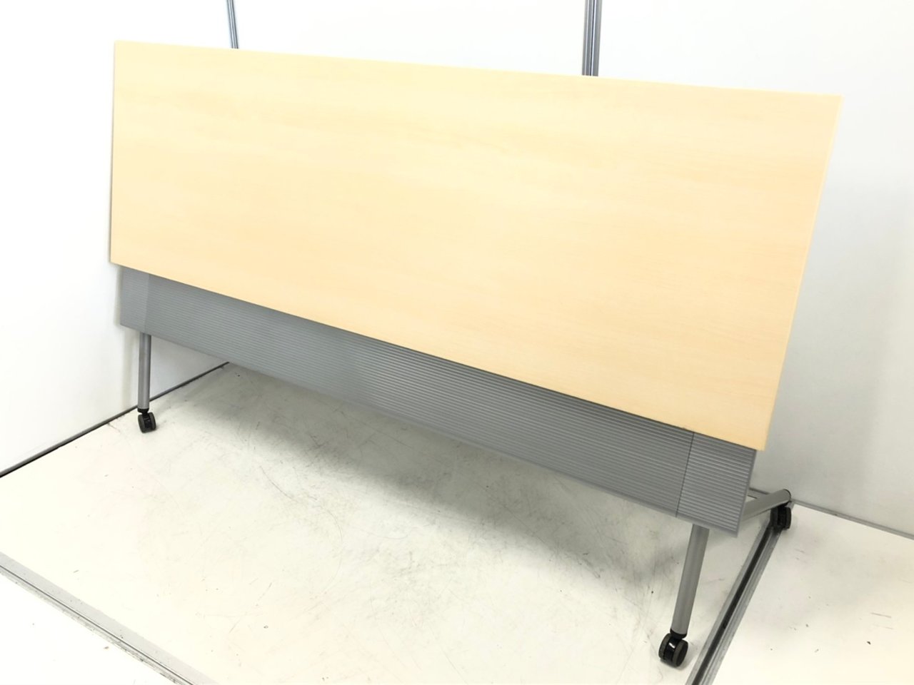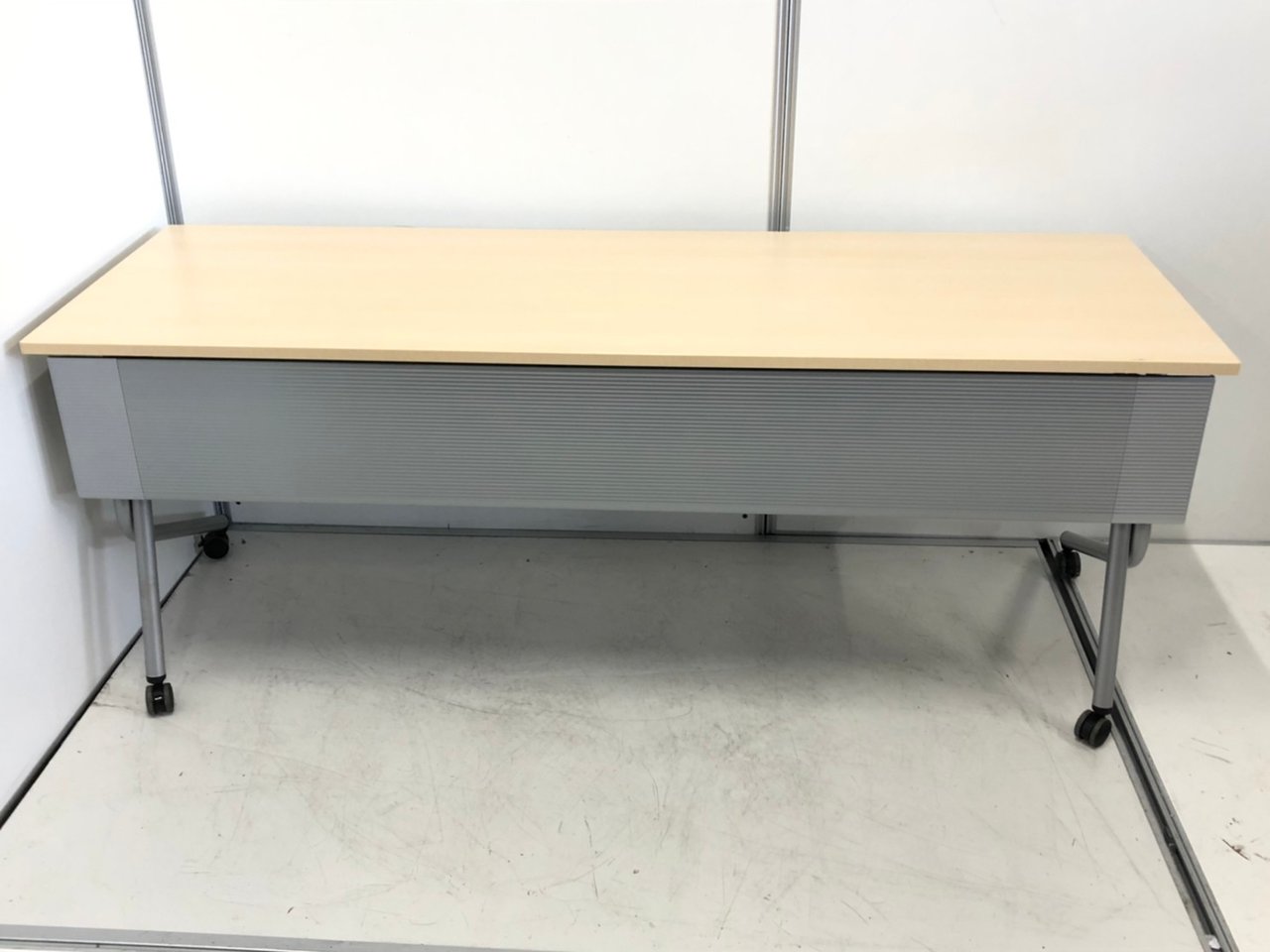 【定価約8万円】【天板ナチュラルカラーの人気サイドスタックテーブル!2~3人使用に最適!】■オカムラ(okamura)製 ネスティア(NESTIA)シリーズ サイドスタックテーブル フラップタイプ W1800×D600㎜ ■幕板付 ■木目ナチュラル