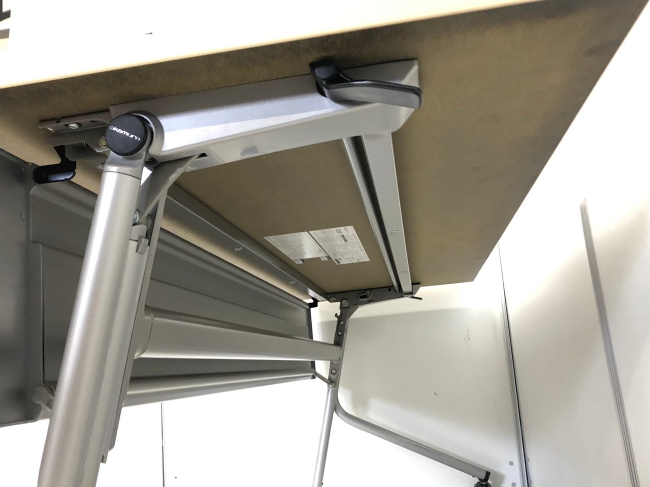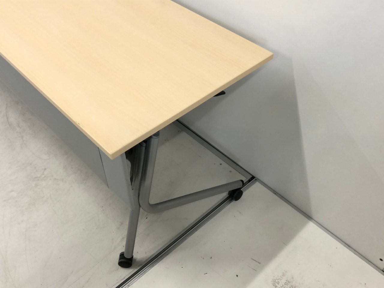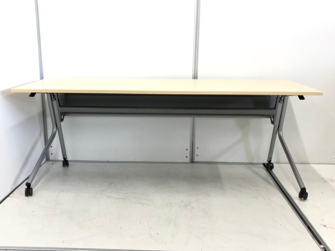 【定価約8万円】【天板ナチュラルカラーの人気サイドスタックテーブル!2~3人使用に最適!】■オカムラ(okamura)製 ネスティア(NESTIA)シリーズ サイドスタックテーブル フラップタイプ W1800×D600㎜ ■幕板付 ■木目ナチュラル