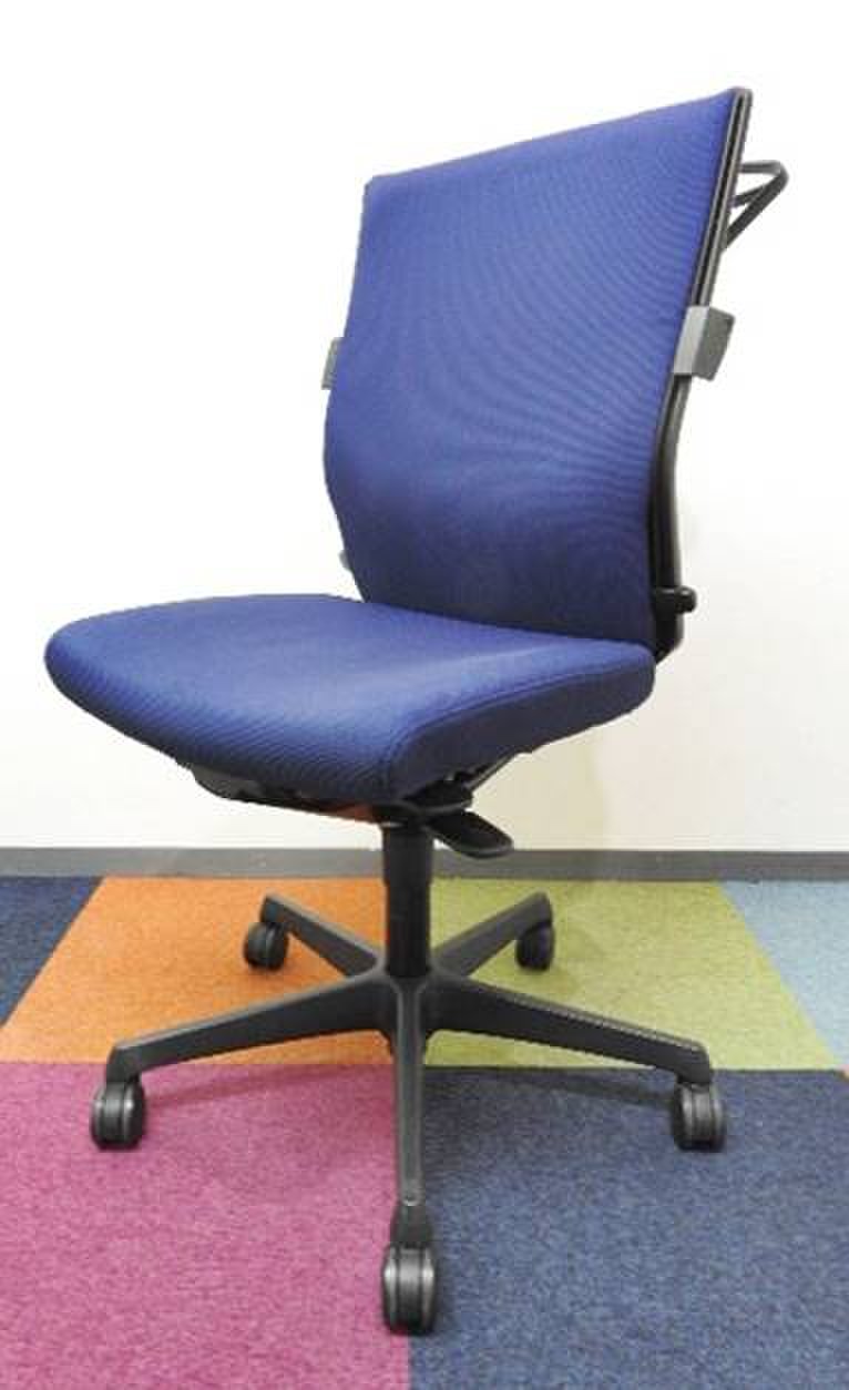 【長時間のデスクワークもランバーが快適にサポート! 定番オフィスチェア!起業や入替に!】■オカムラ(okamura)製 エスクードチェア (ESCUDO) 肘無チェア ハイバックチェア ■ランバー付 ■ダークブルー×ブラックシェル