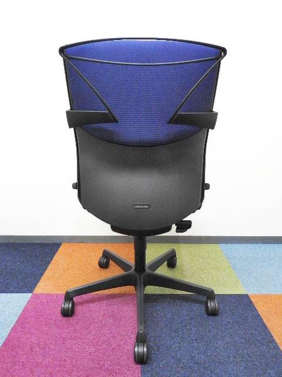 【長時間のデスクワークもランバーが快適にサポート!オフィスの定番チェア!起業や入替に!】■オカムラ(okamura)製 エスクードチェア (ESCUDO) 肘無し ハイバックチェア ■ランバー付 ■ダークブルー×ブラックシェル