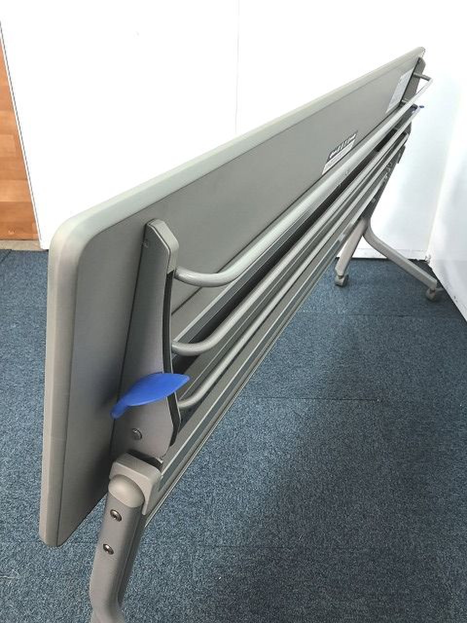 - 一部不具合あり天板歪み、アジャスター無し、キャスター使用不可ようなそのテーブルの本来の効用を果たすための機能以外の一部が使用不可な状態。(例、キャスターロッ ク機能使用不可、棚板無し等がある。)