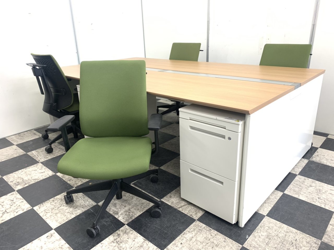 【倉庫在庫品】【W2400】/フリーアドレスデスク/オカムラ/フリーウェイ/天板ナチュラル/4名使用想定 中古 レイアウト 起業 移転 オフィスバスターズ神戸店