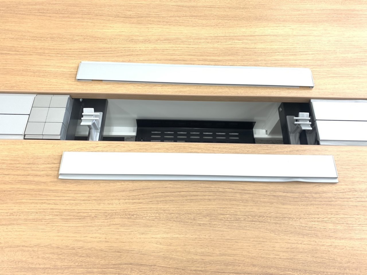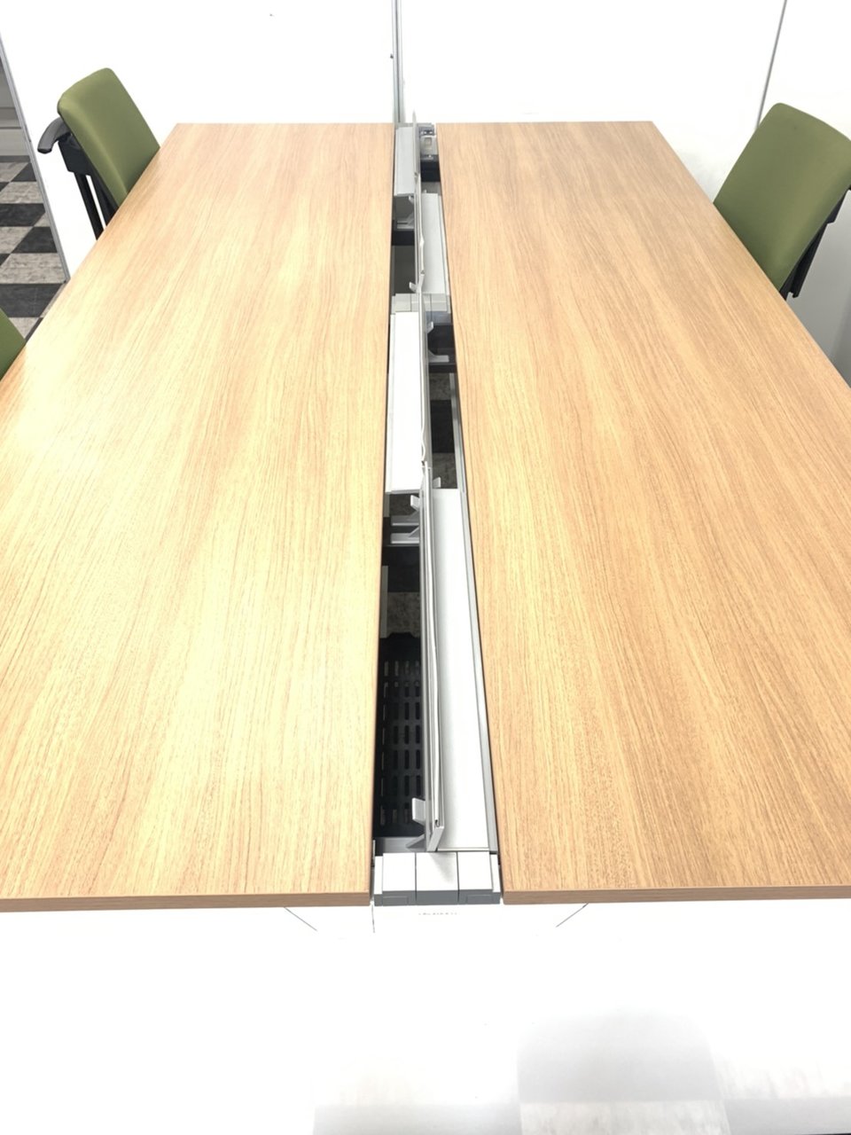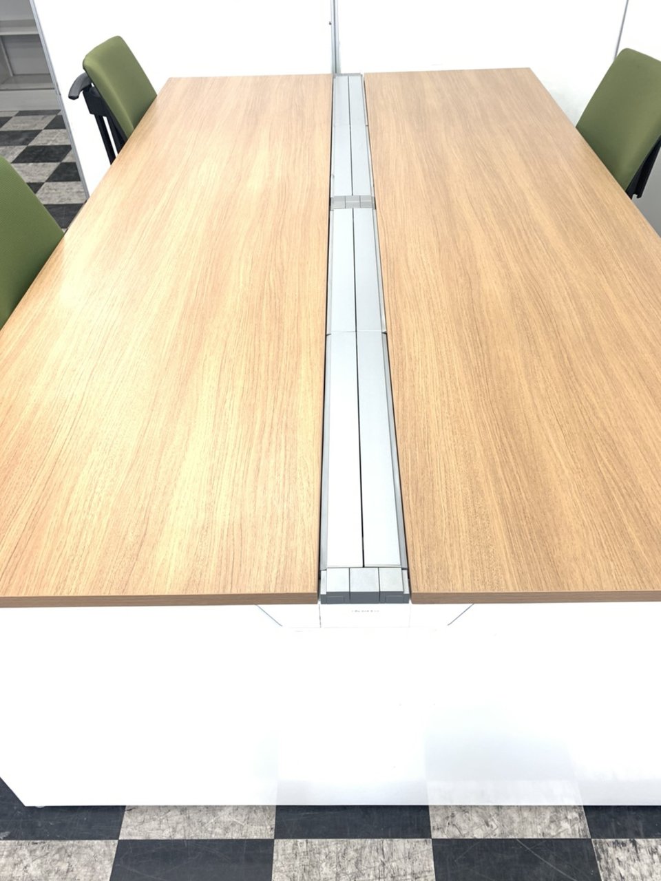 【限定1台】オカムラ プロユニットフリーウェイ フリーアドレスデスク W2400×D1400 天板:ネオウッドライド 脚:ホワイト 4名掛け想定 1人当たりW1200の使いやすい定番サイズ