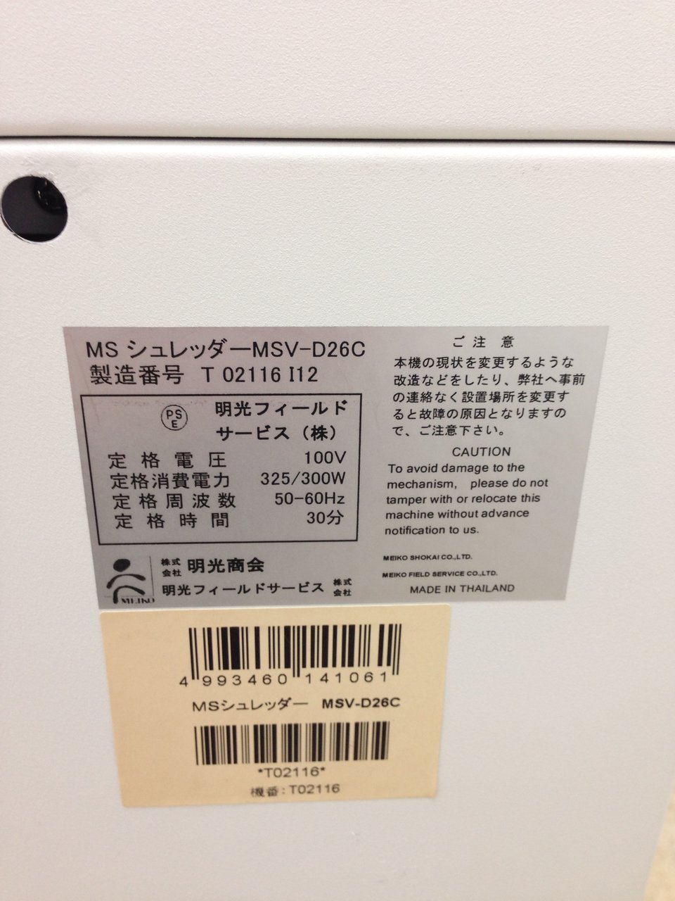 【中古】 MSVシリーズ MSV-D26C 明光商会 シュレッダー 292613