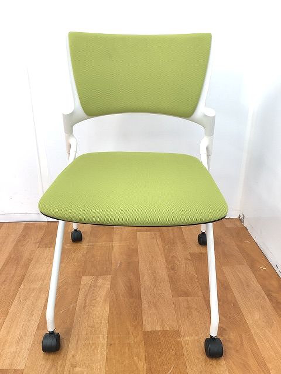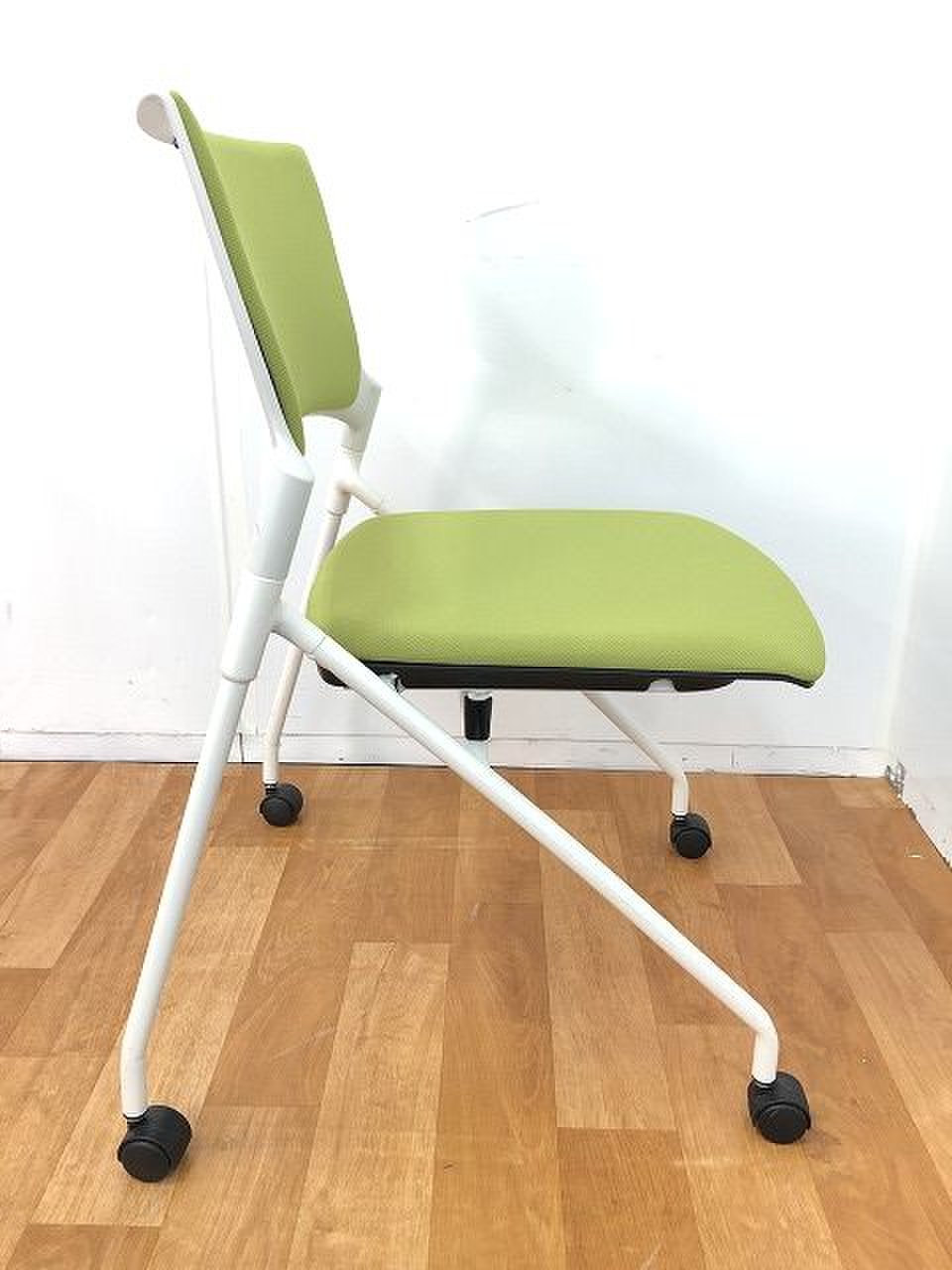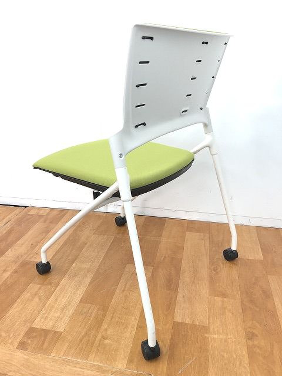 【在庫入替セール】【4脚限定】【平行ネスティングで省スペース化!】■イトーキ(ITOKI)製 マノスチェア(MANOSS)肘無 ネスティングチェア ミーティングチェア ■背パッド キャスター付 ■アイビーグリーン×ブラックシェル