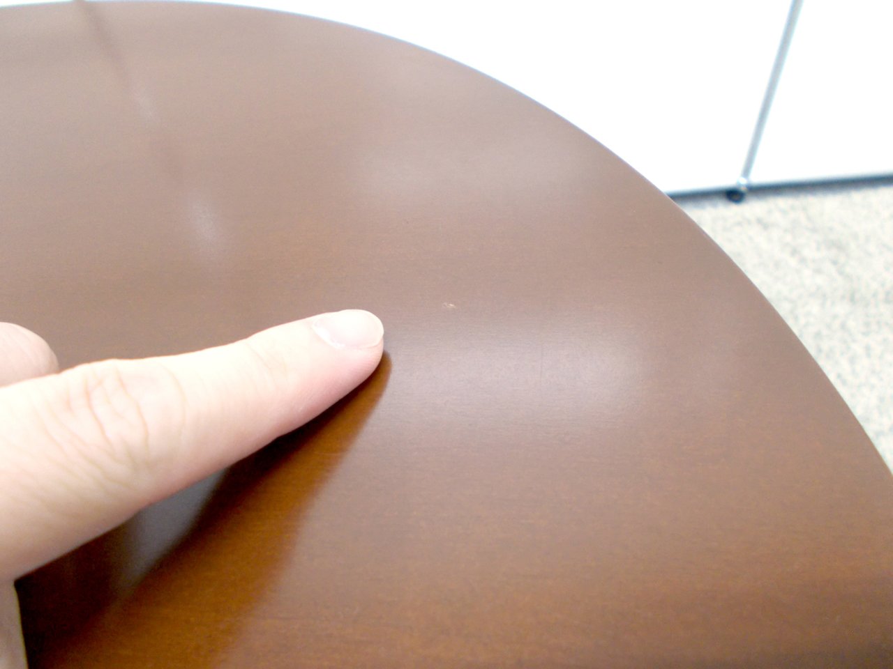 - あり黄ばみ・変色が広い範囲にうっすらある、または濃い黄ばみ・変色が一部ある。(例、天板、幕板、棚板、サイド部分、脚部等にある。)