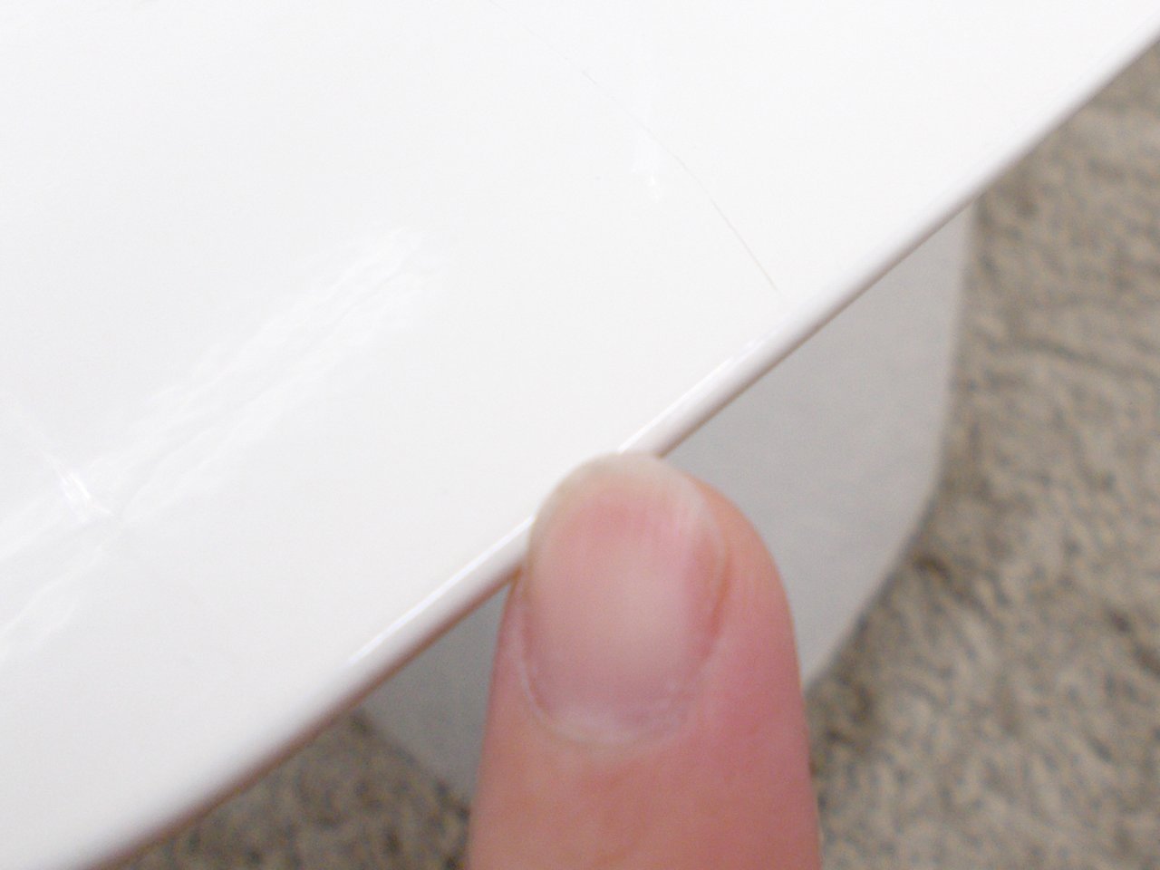 - あり黄ばみ・変色が広い範囲にうっすらある、または濃い黄ばみ・変色が一部ある。(例、天板、幕板、棚板、サイド部分、脚部等にある。)