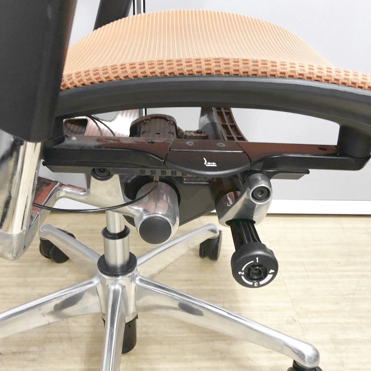 - 座面の前後スライド調整レバーで操作(前後50mm分調整で)できます。(グラデーションサポートメッシュタイプを除く)