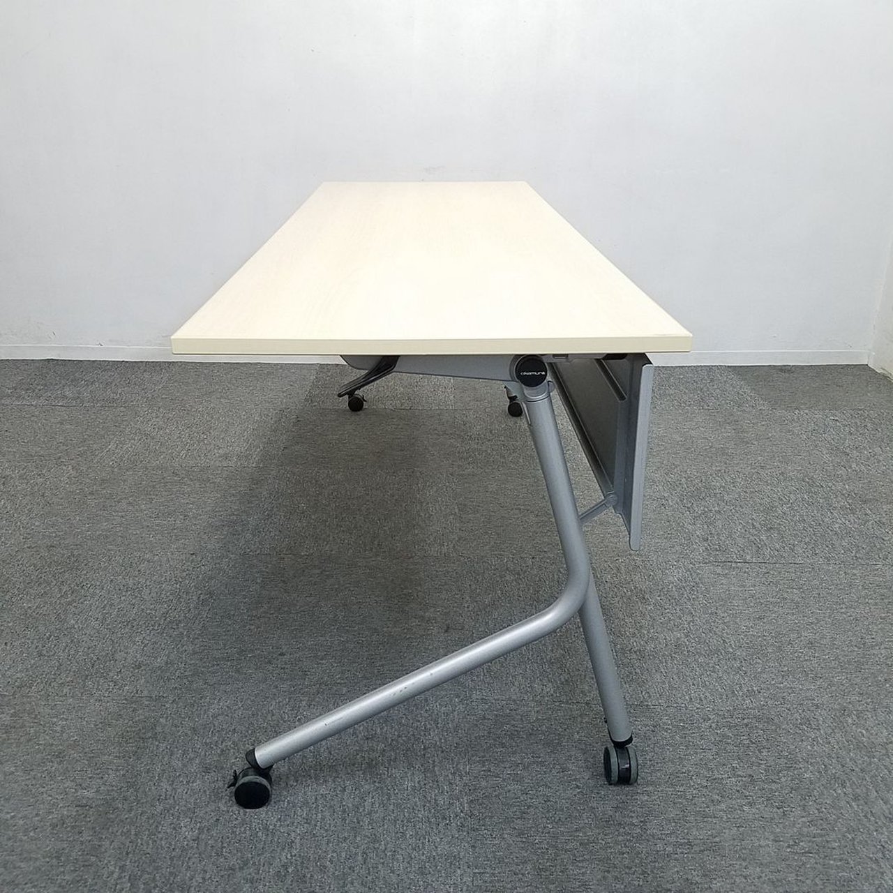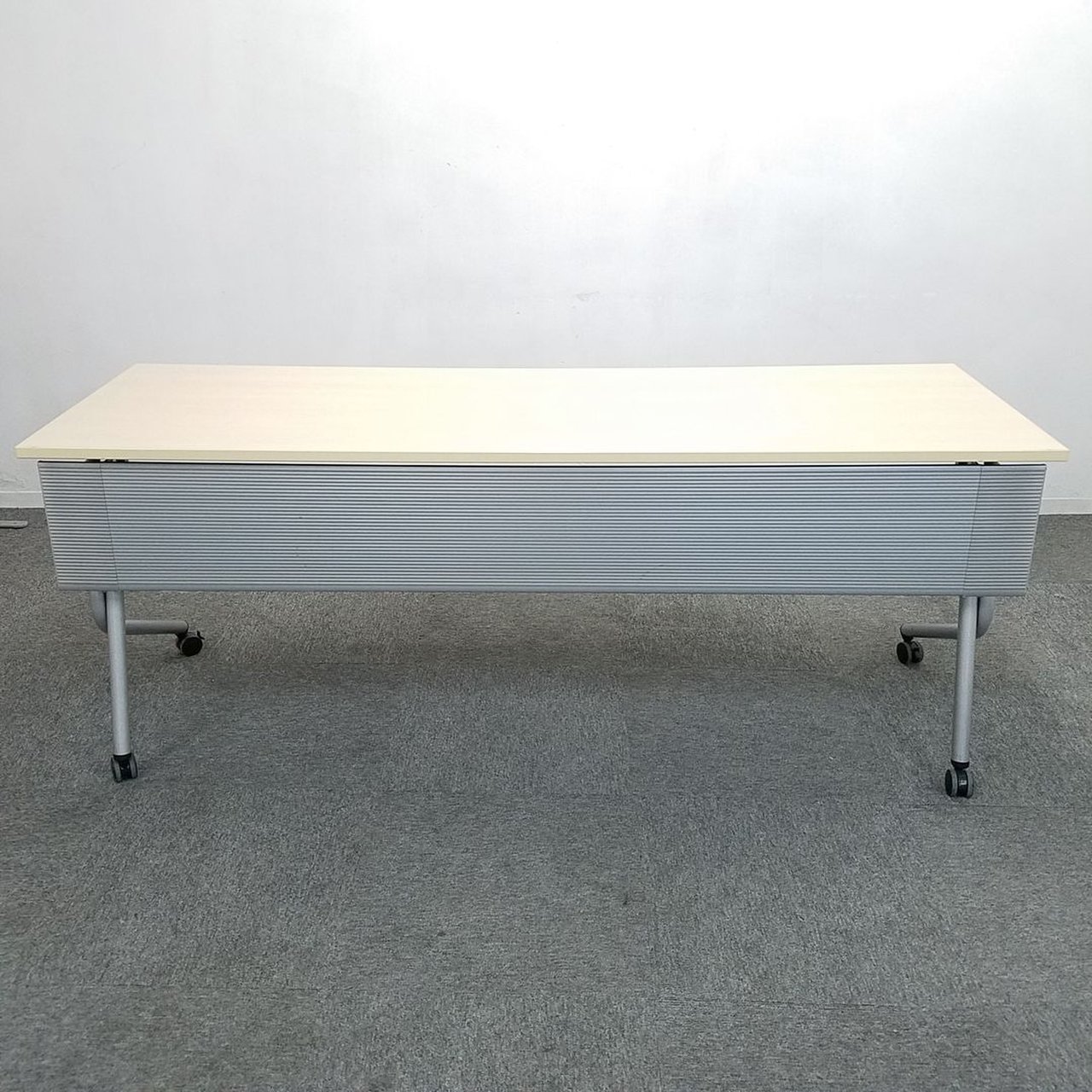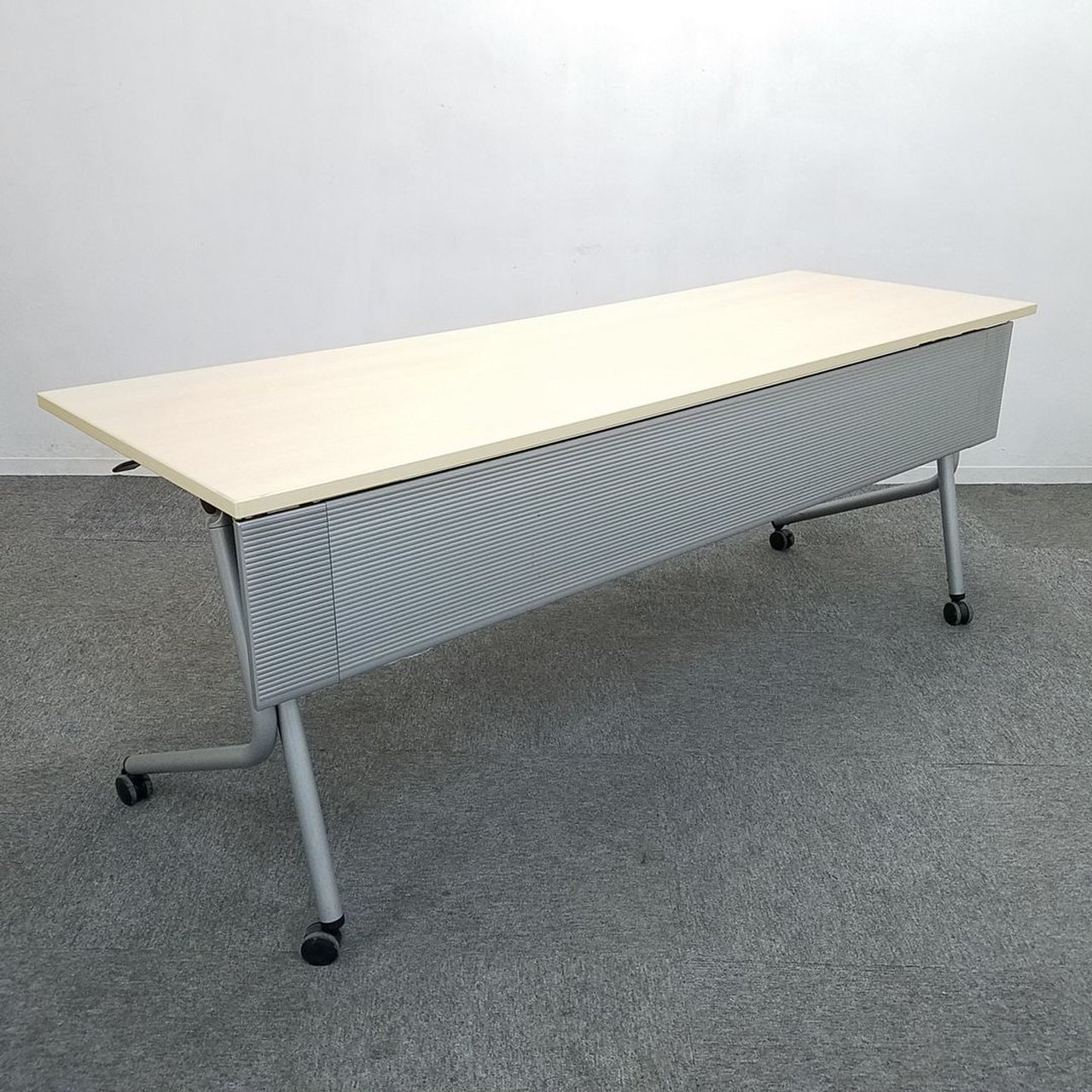 【定価約8万円】【天板ナチュラルカラーの人気サイドスタックテーブル!2~3人使用に最適!】■オカムラ(okamura)製 ネスティア(NESTIA)シリーズ サイドスタックテーブル フラップタイプ W1800×D600㎜ ■幕板付 ■木目ナチュラル