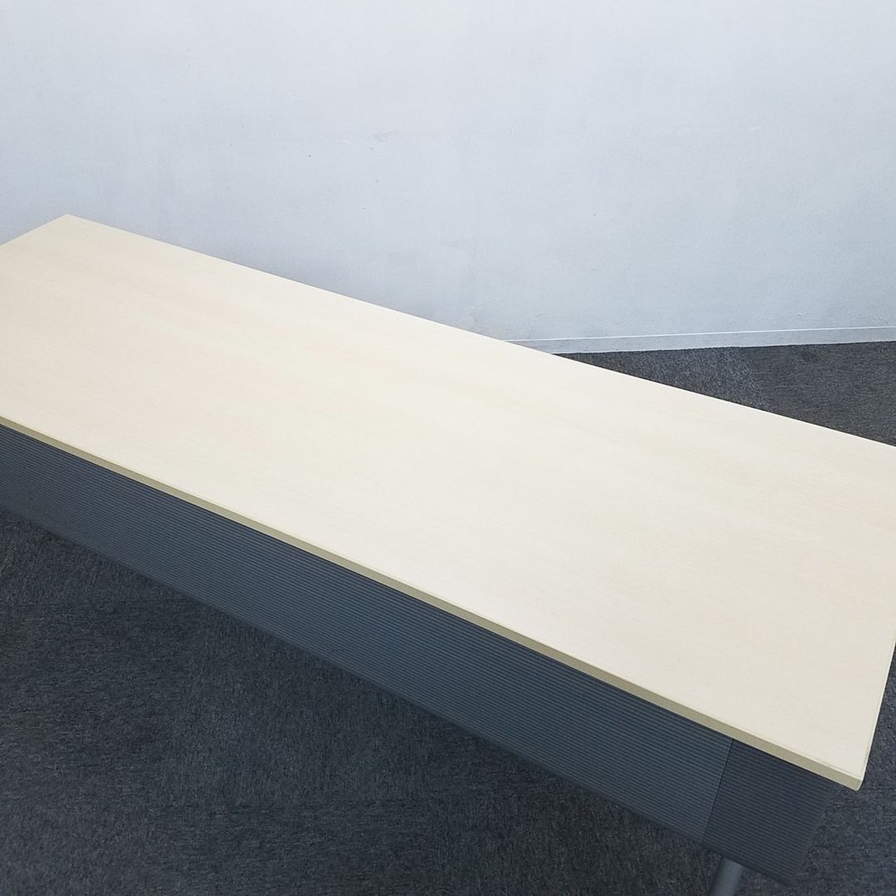 【定価約8万円】【天板ナチュラルカラーの人気サイドスタックテーブル!2~3人使用に最適!】■オカムラ(okamura) 製 ネスティアシリーズ(NESTIA) サイドスタックテーブル W1800×D450㎜ ■幕板付 ■木目ナチュラル