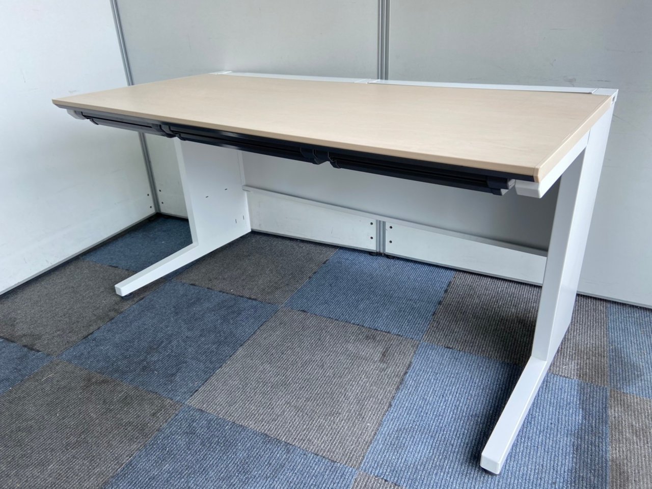 【ワークスペース広々!足元ゆったりの幅1400㎜タイプ!】■コクヨ(KOKUYO)製 isシリーズ(アイエス) 平机 幅1400㎜ 引き出し無し ■天板:木目ナチュラル 本体:ホワイト オフィスバスターズ東大阪店