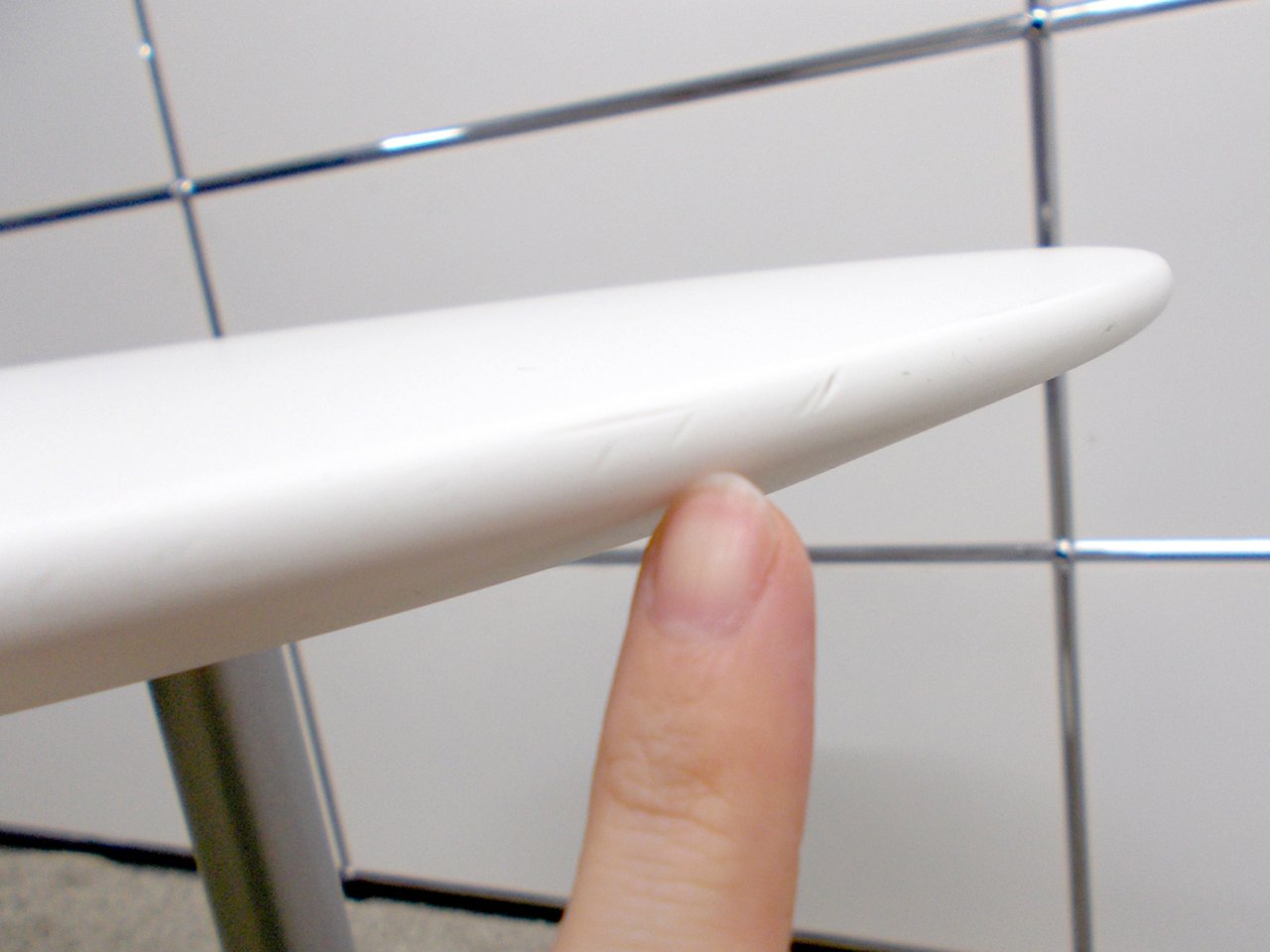 - 壊れている天板歪み、アジャスター無し、キャスター使用不可のようにそのテーブルの本来の効用を果たすための機能に不具合がある。