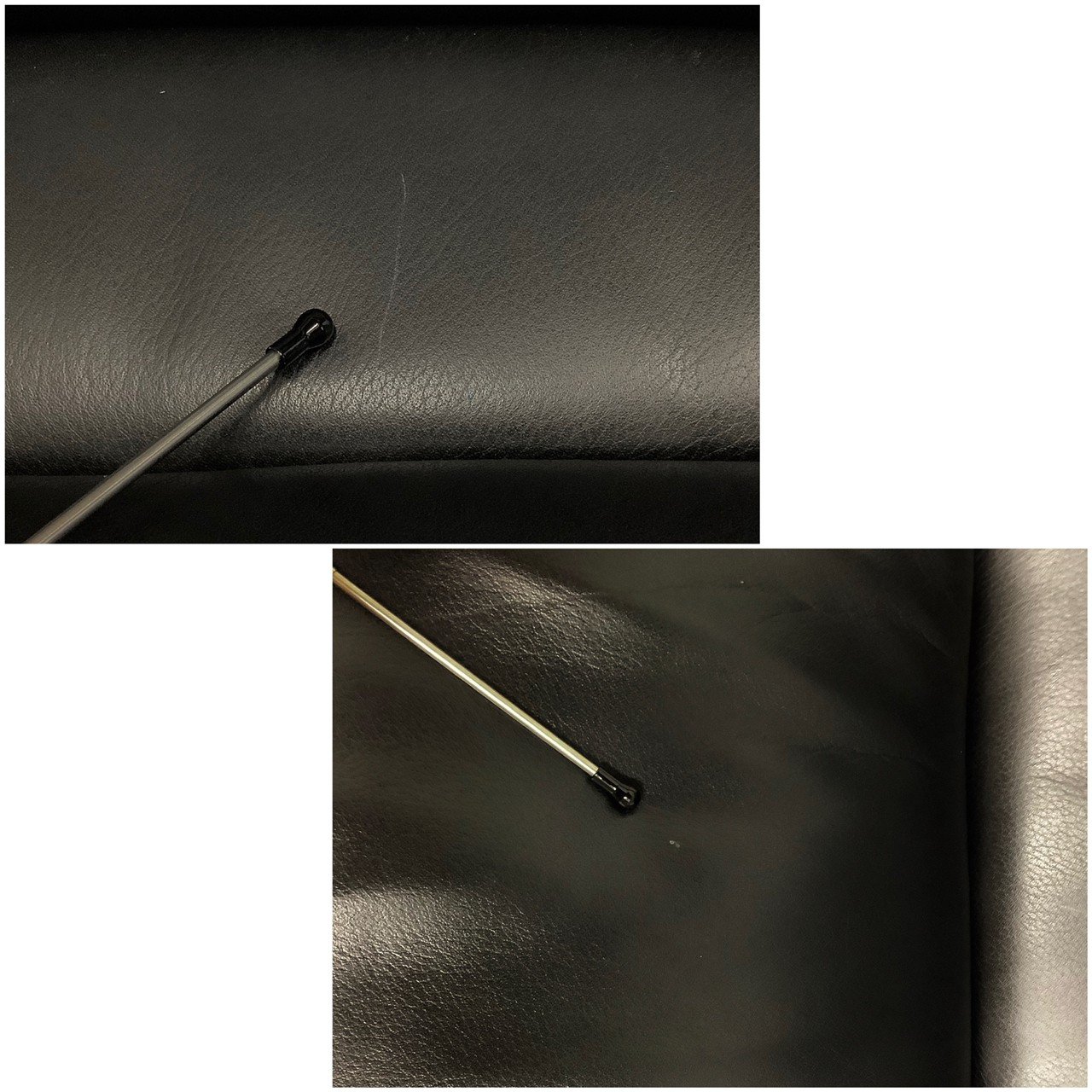 - あり黄ばみ・変色が広い範囲にうっすらある、または濃い黄ばみ・変色が一部ある。(例、座面・背もたれ、脚部等にある。)