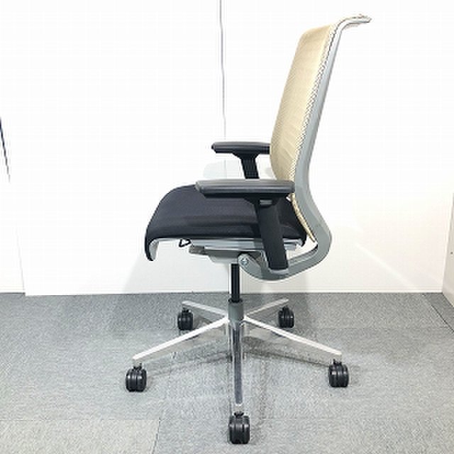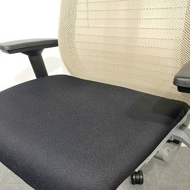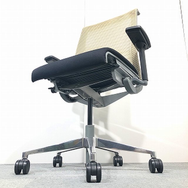 快適な座り心地に不可欠な調節機能である、上下昇降、座面の奥行き調整、リクライニングなどを備えており、操作もわかりやすく好評です。 特に、座面の奥行きは、座面下の左右に通った細いバーで調整でき、座ったままで軽やかに滑るように調整が可能です。 価格面では、新品では高めですが、中古は流通も多く、定価の3割前後の価格で高級チェアの座り心地を手に入れることができます!