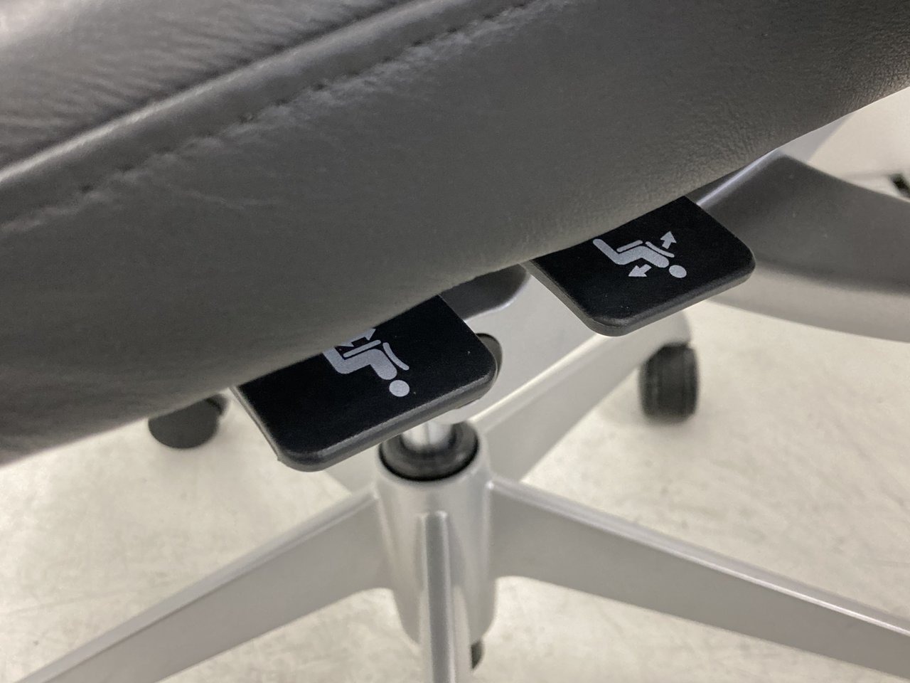 座面の高さや前後などの基本的な調整レバーが座面裏の前方に集約されており、姿勢を変えずに調節ができます。