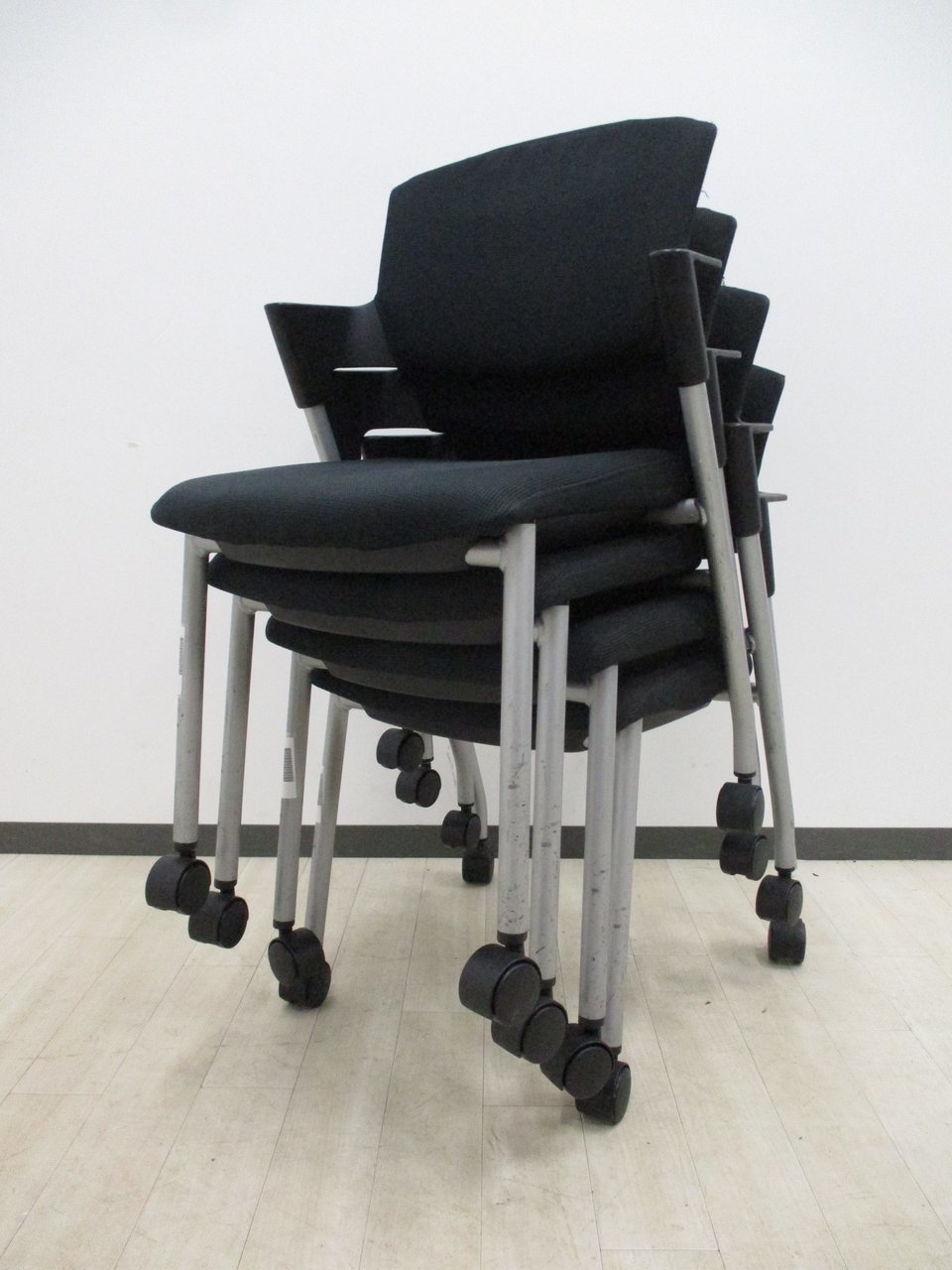 【セット商品(チェア×4脚)】【シンプルスマートなスタッキングチェア!分厚いクッションで長時間でも快適な座り心地!】/オススメ(おすすめ) /人気商品【弊社使用欄:A01037619】■スタッキングチェア 肘付ミーティングチェア ■固定肘 ■キャスター付 ■ブラック ■背面樹脂/コクヨ(KOKUYO/プロッティ