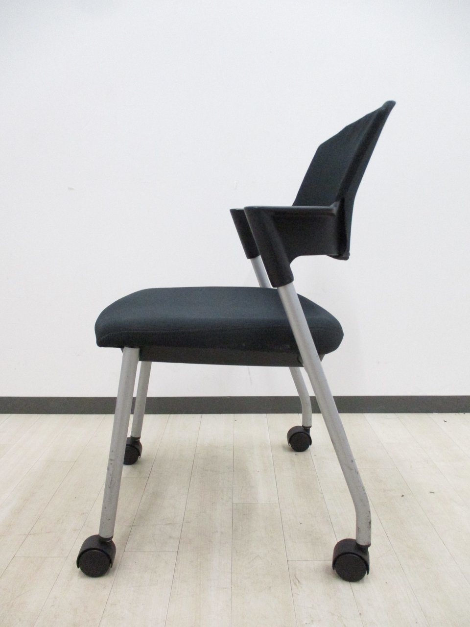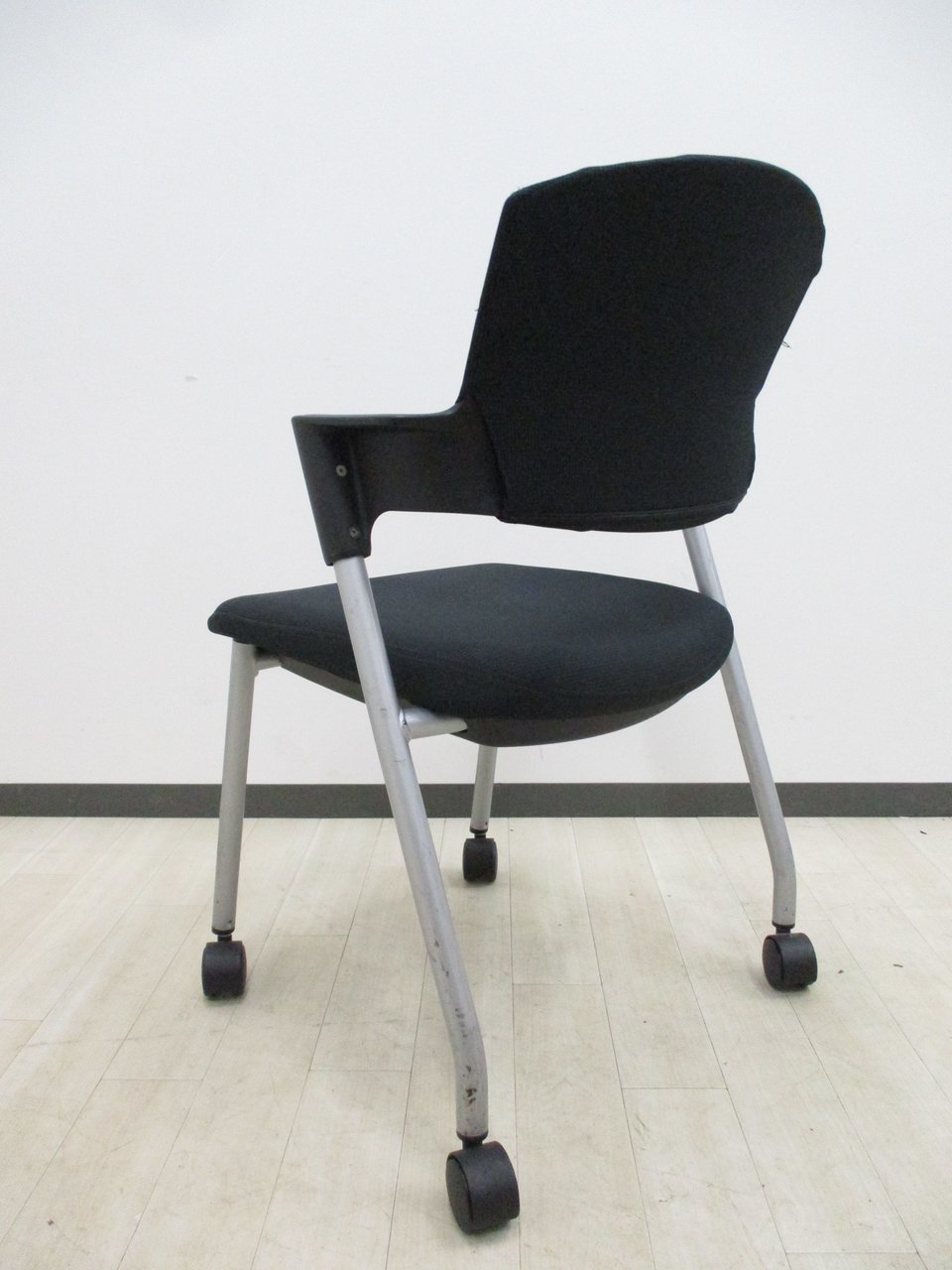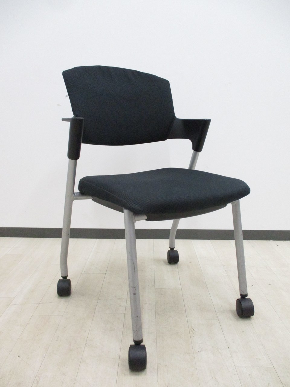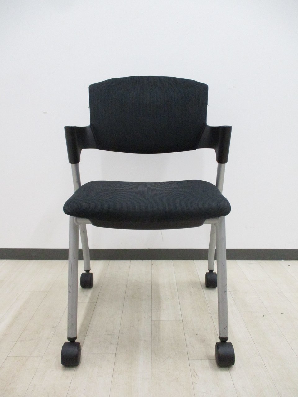 【シンプルスマートなスタッキングチェア!分厚いクッションで長時間でも快適な座り心地!】■スタッキングチェア 肘付ミーティングチェア ■固定肘 ■キャスター付 ■ブラック ■背面樹脂/コクヨ(KOKUYO/プロッティ