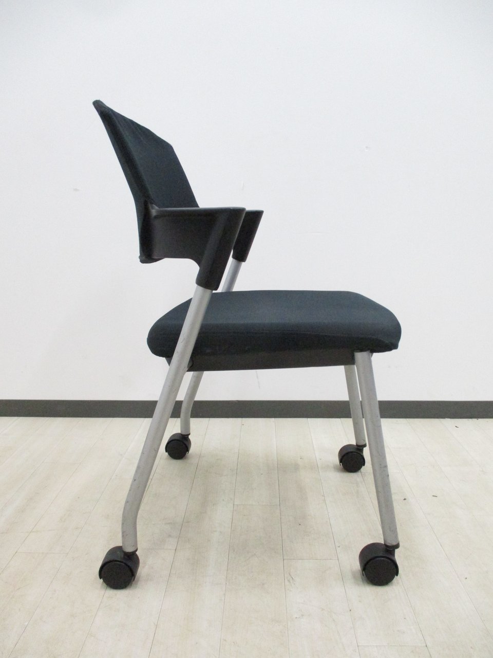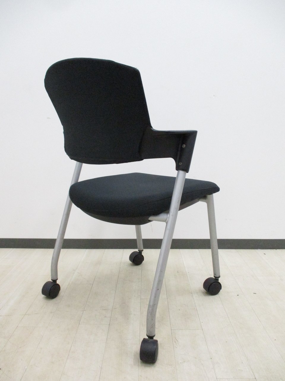 【シンプルスマートなスタッキングチェア!分厚いクッションで長時間でも快適な座り心地!】■スタッキングチェア 肘付ミーティングチェア ■固定肘 ■キャスター付 ■ブラック ■背面樹脂/コクヨ(KOKUYO/プロッティ