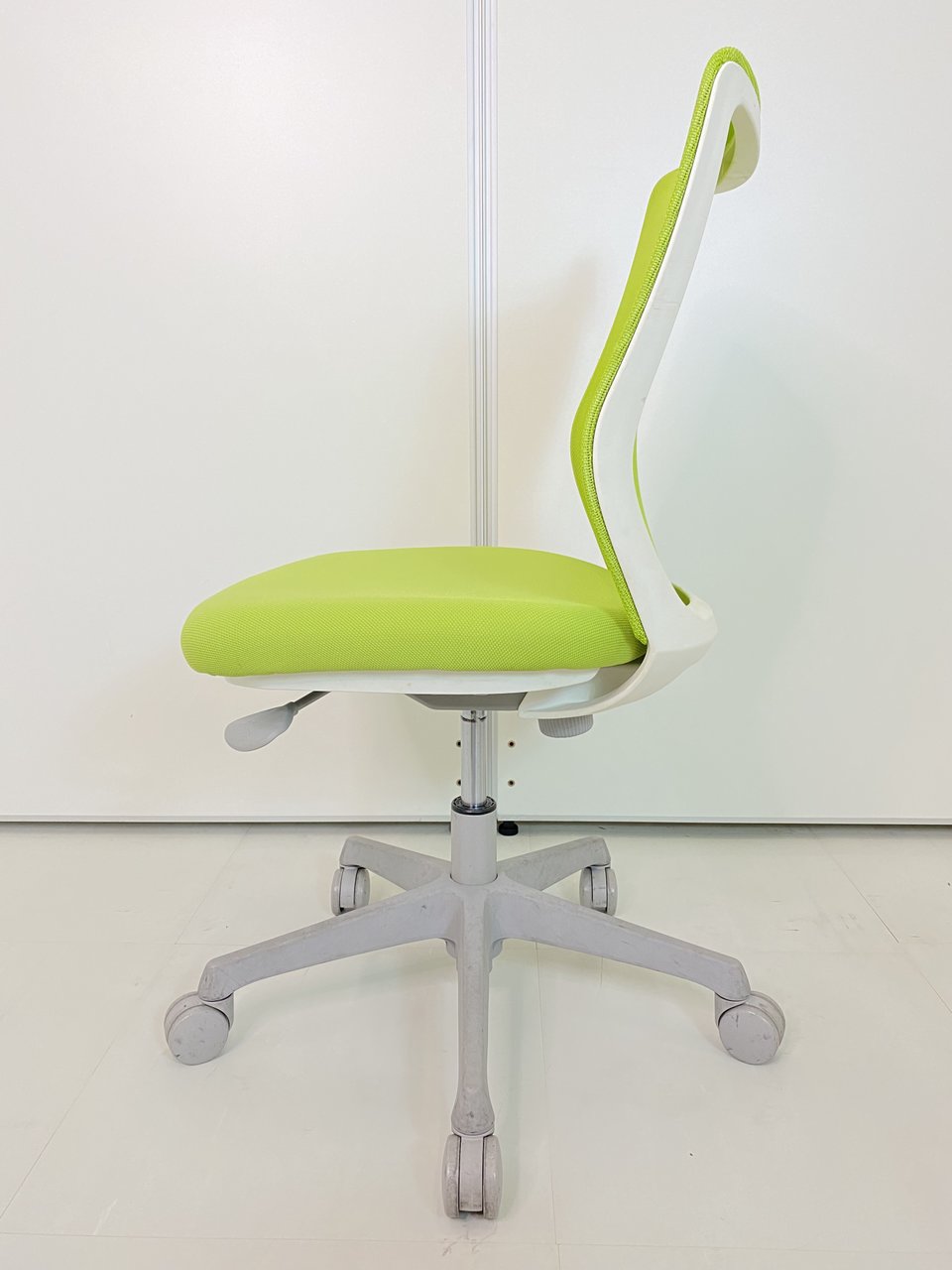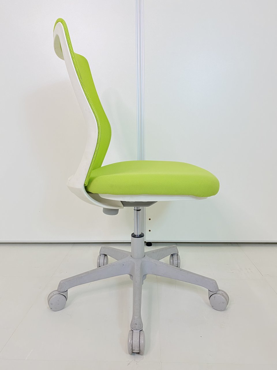 入替セール品につきお値下げ!【やわらかな座り心地を実現!腰への負担を減らすS字形状!】■オカムラ(okamura)製 CG-Mチェア 肘無し ローバックチェア パッド仕様 ■ライムグリーン
