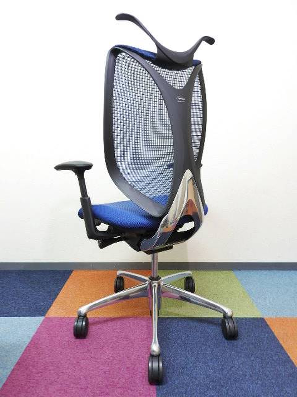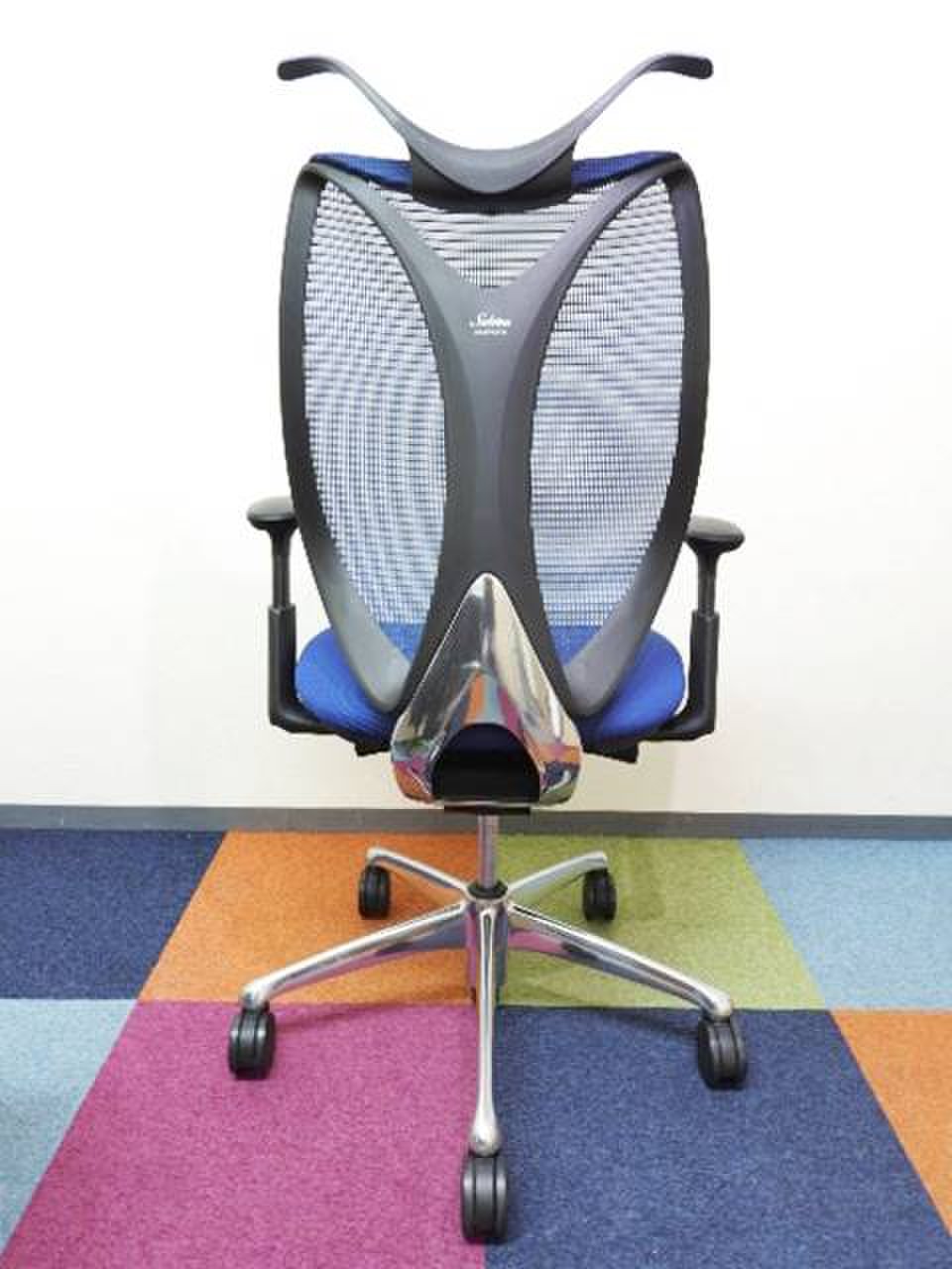 【前傾チルト付!流れるような美しいフォルムの最高級メッシュチェア!】■オカムラ(okamura)製 Sabrina(サブリナ) ハイバック 肘付き ■可動肘 ■背面メッシュ:アクアブルー 座面:ブルー ホワイトフレーム