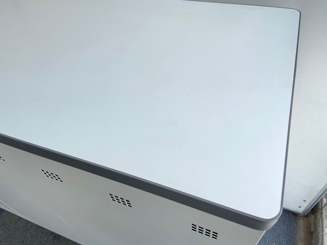 - あり黄ばみ・変色が広い範囲にうっすらある、または濃い黄ばみ・変色が一部ある。(例、天板、正面、背後、サイド部分にある。)