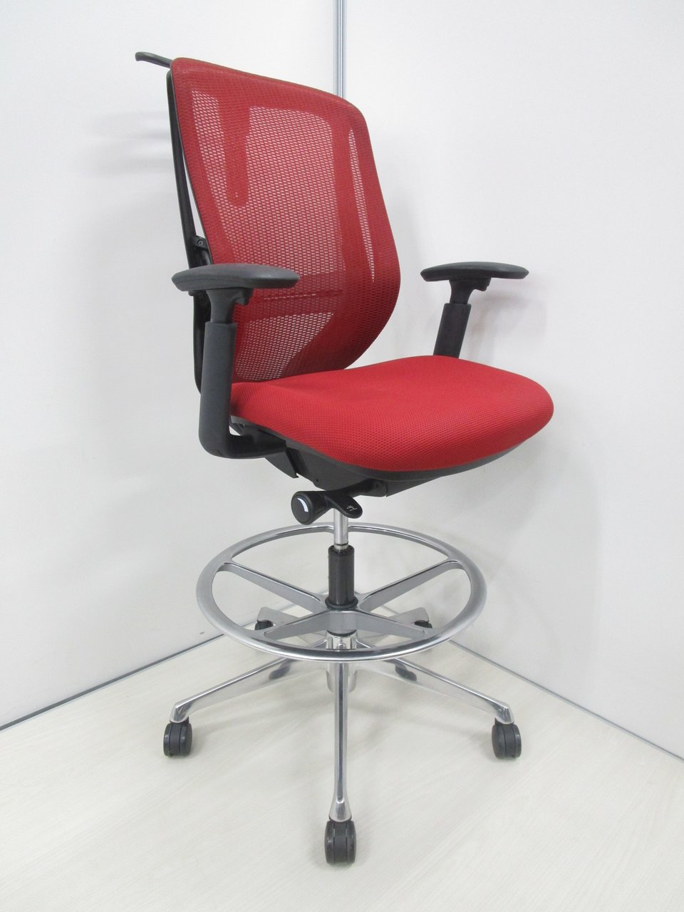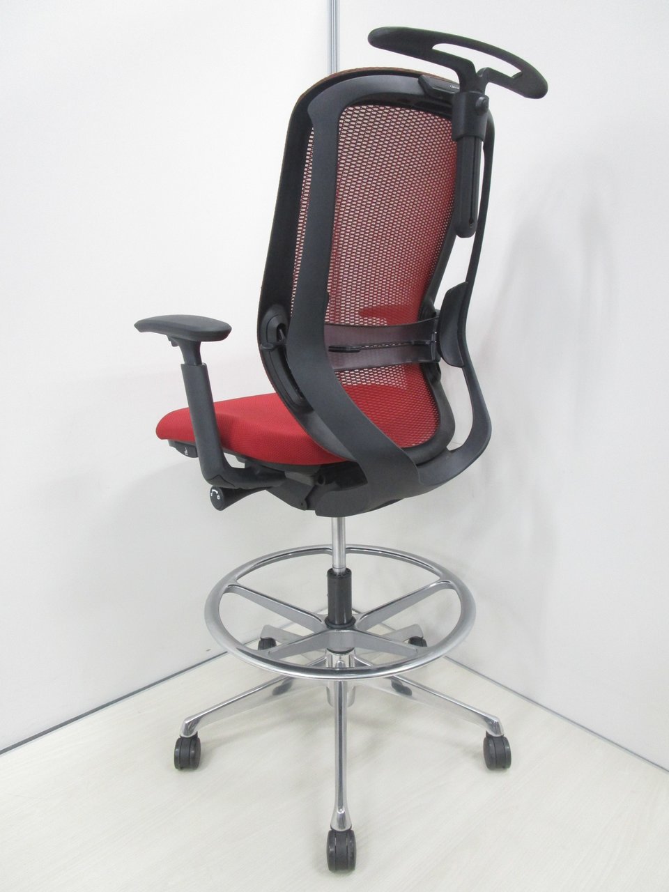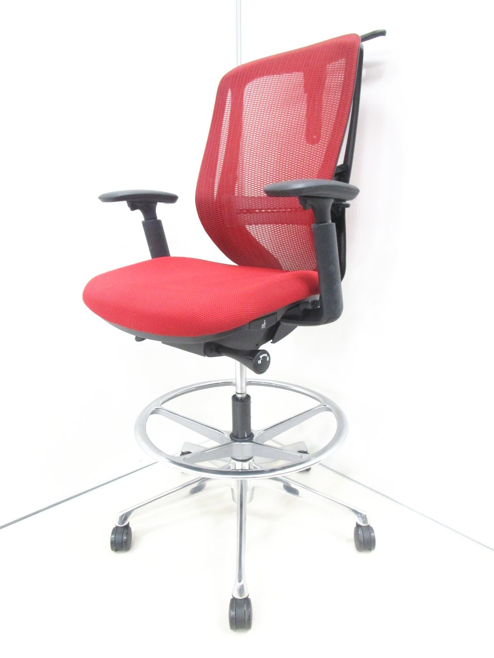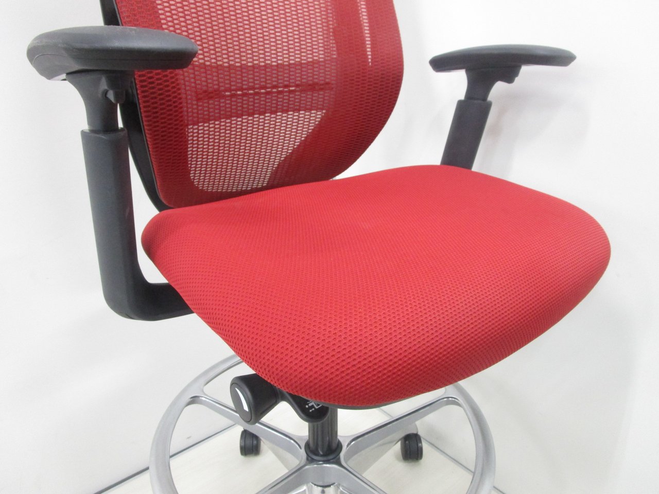 希少なハイチェアタイプ!【肘付】【良好品】オカムラ/シルフィー/レッド【受付にオススメ!】- 池袋店