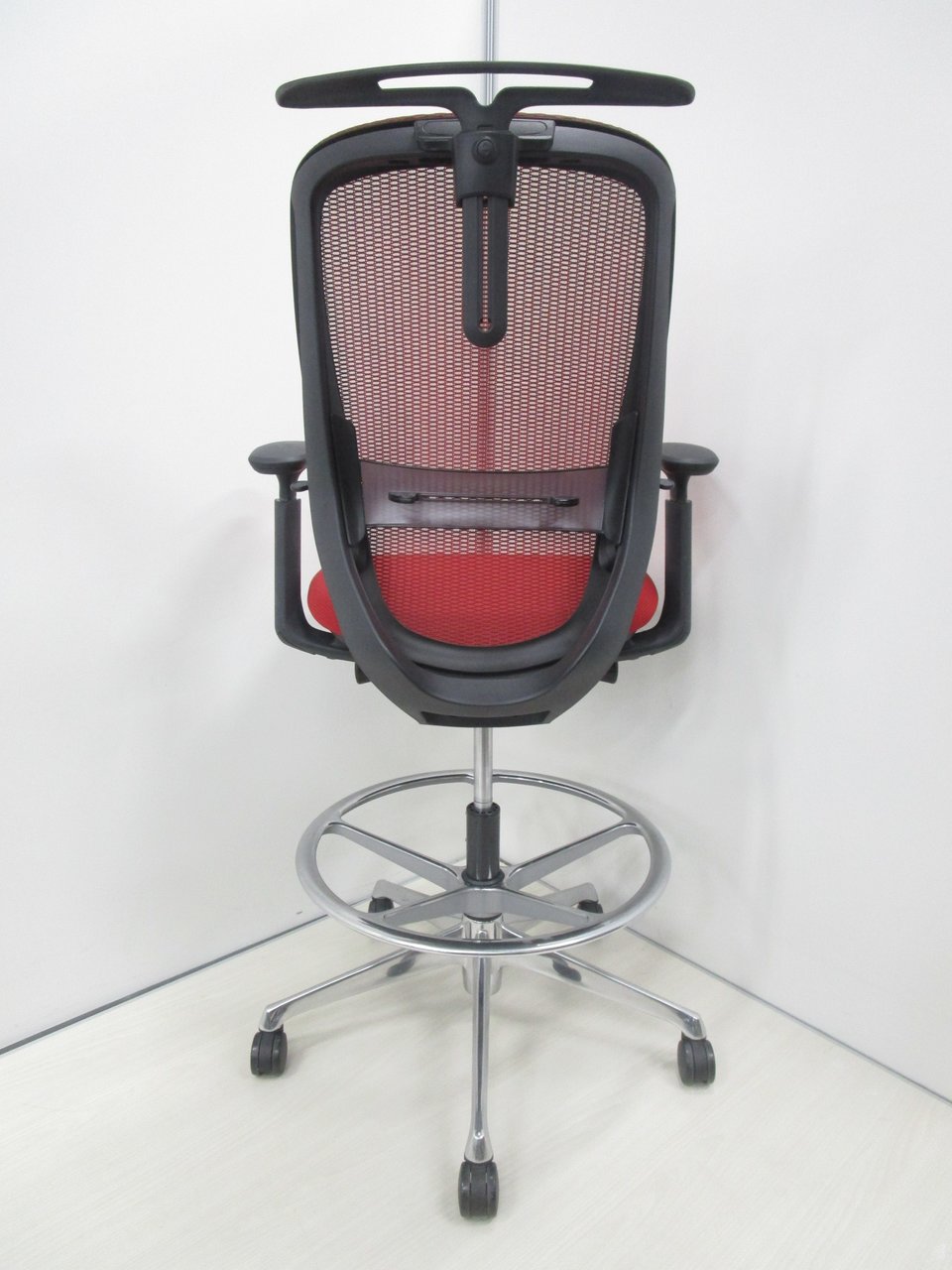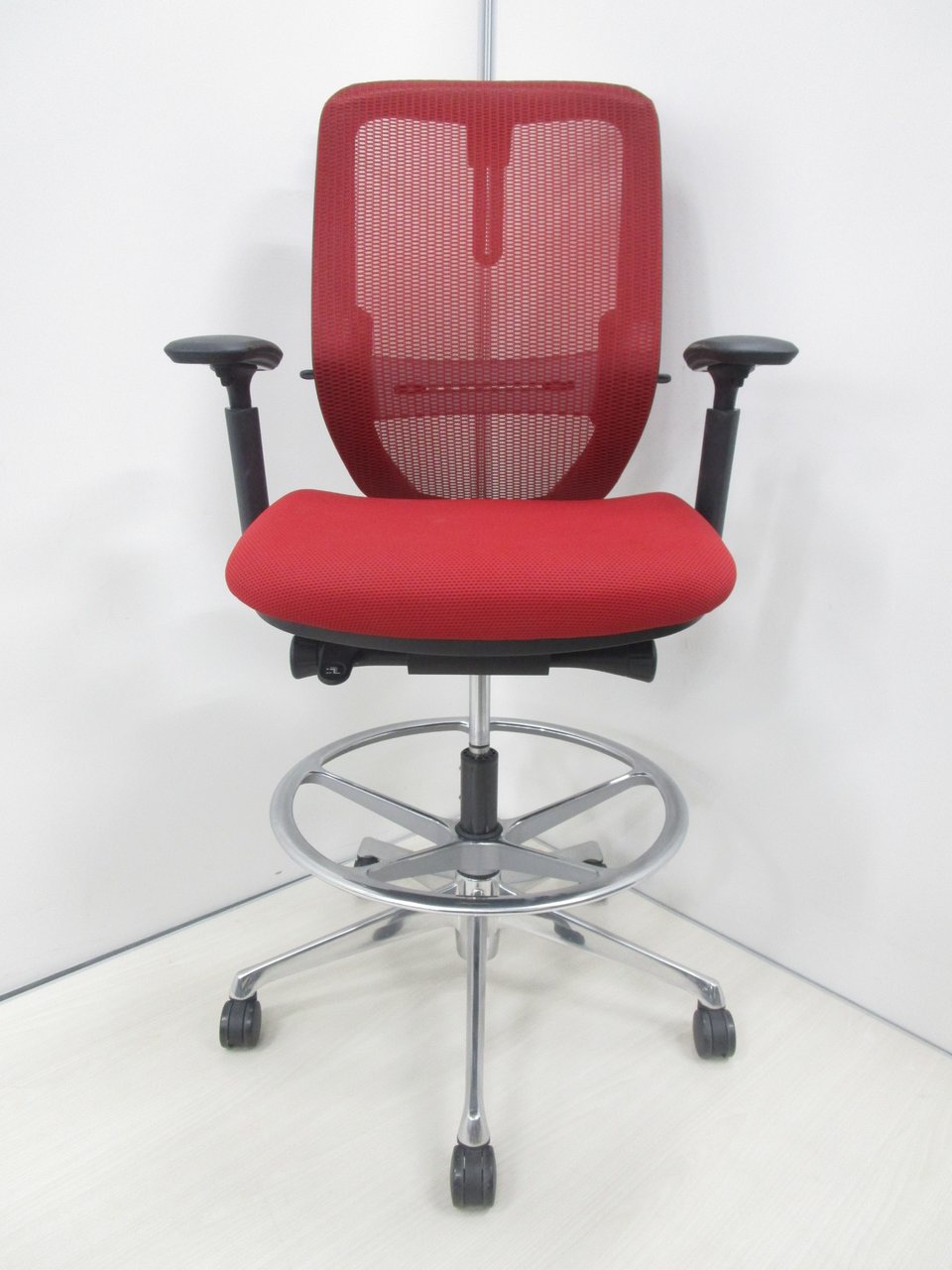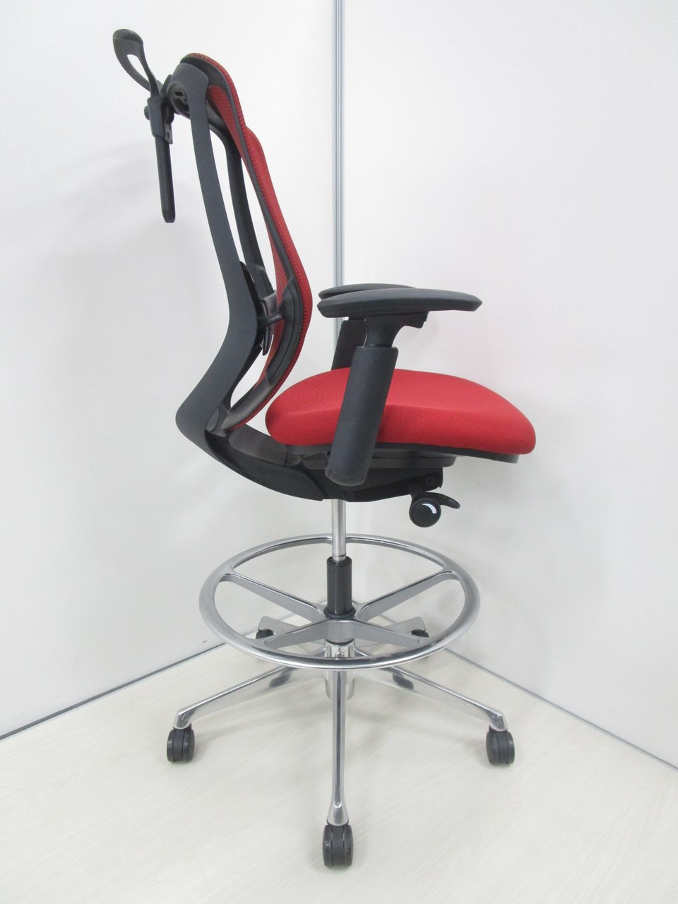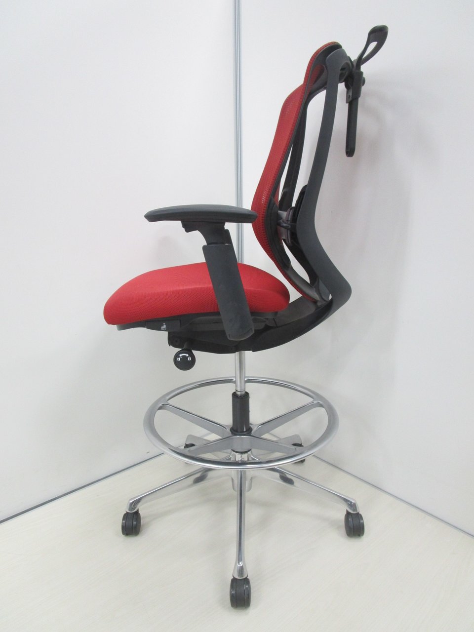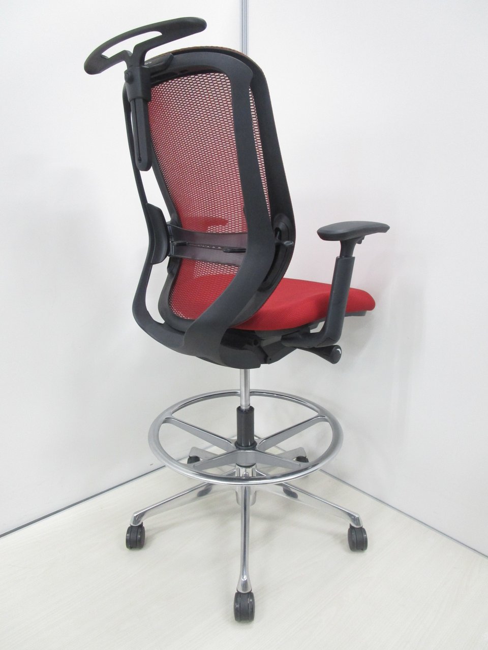 希少なハイチェアタイプ!【肘付】【良好品】オカムラ/シルフィー/レッド【受付にオススメ!】- 池袋店