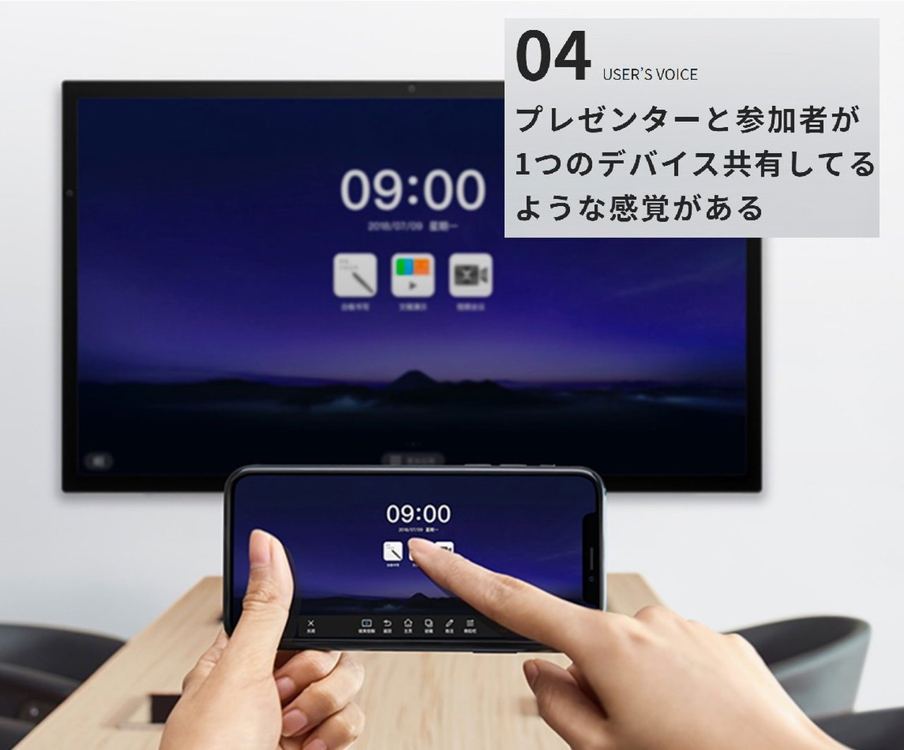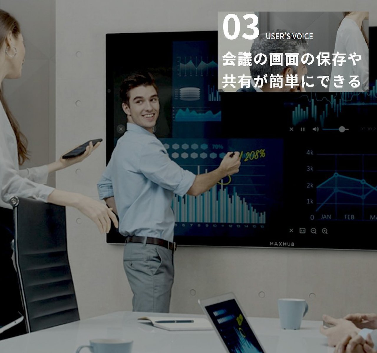MAXHUBの最大の特徴として、双方向で表示・操作が可能です。