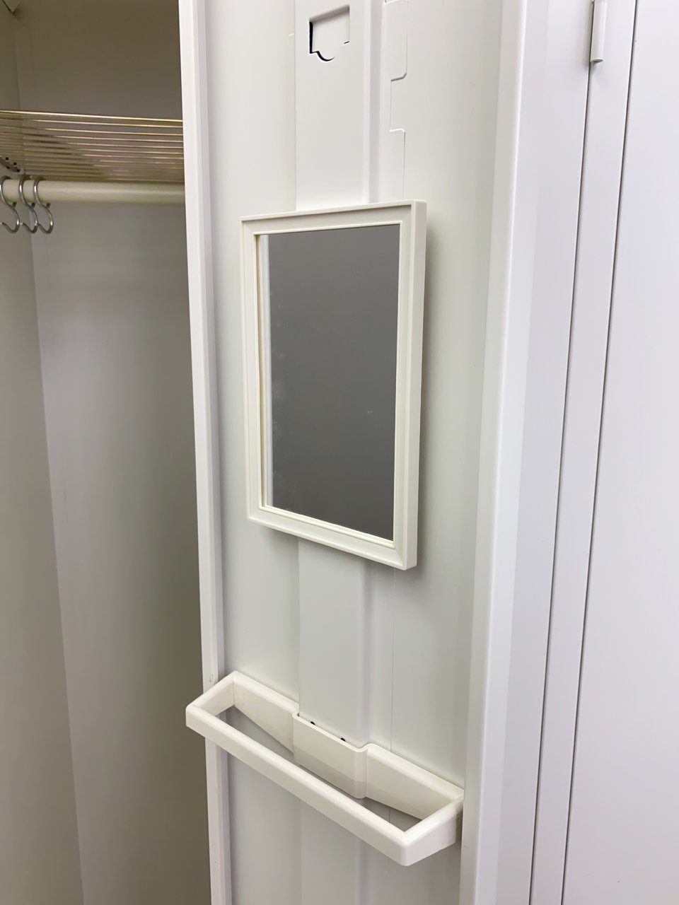 - ほぼ付いてない鏡、ネクタイ掛け、傘立て、網棚、フック等がほぼ付いてない。