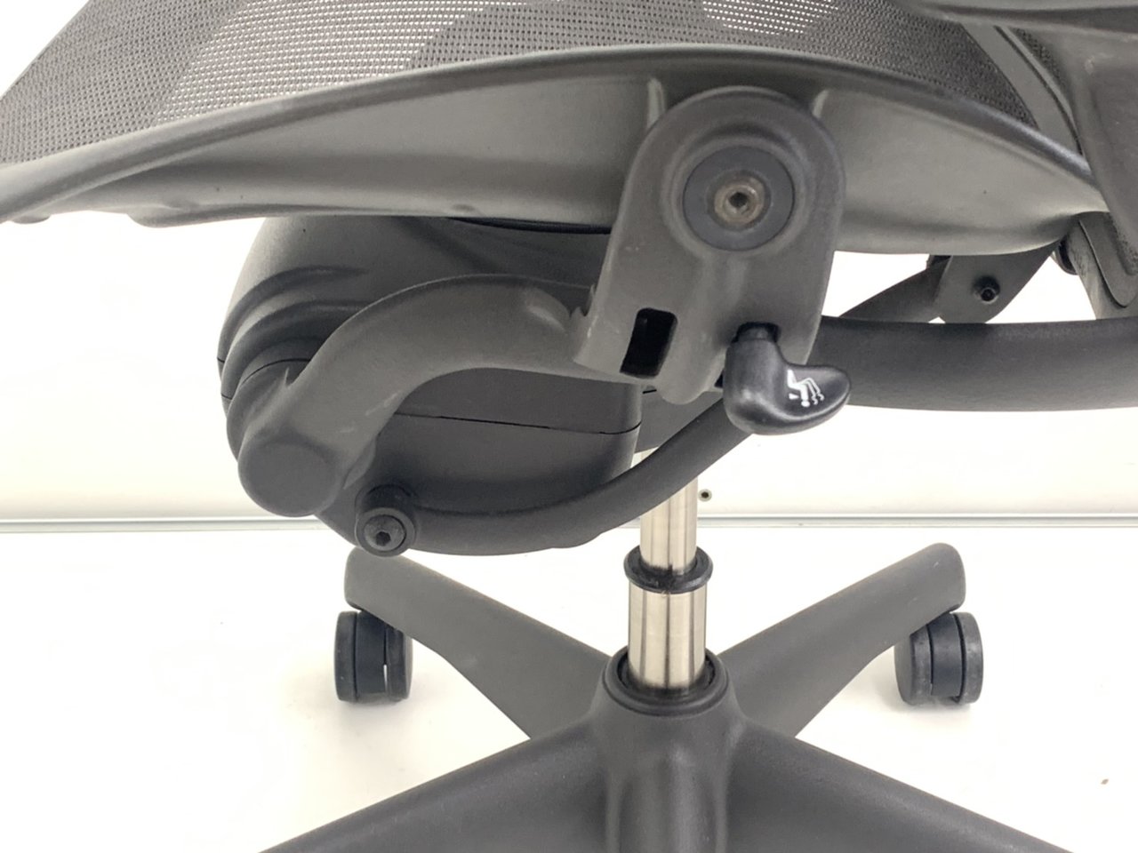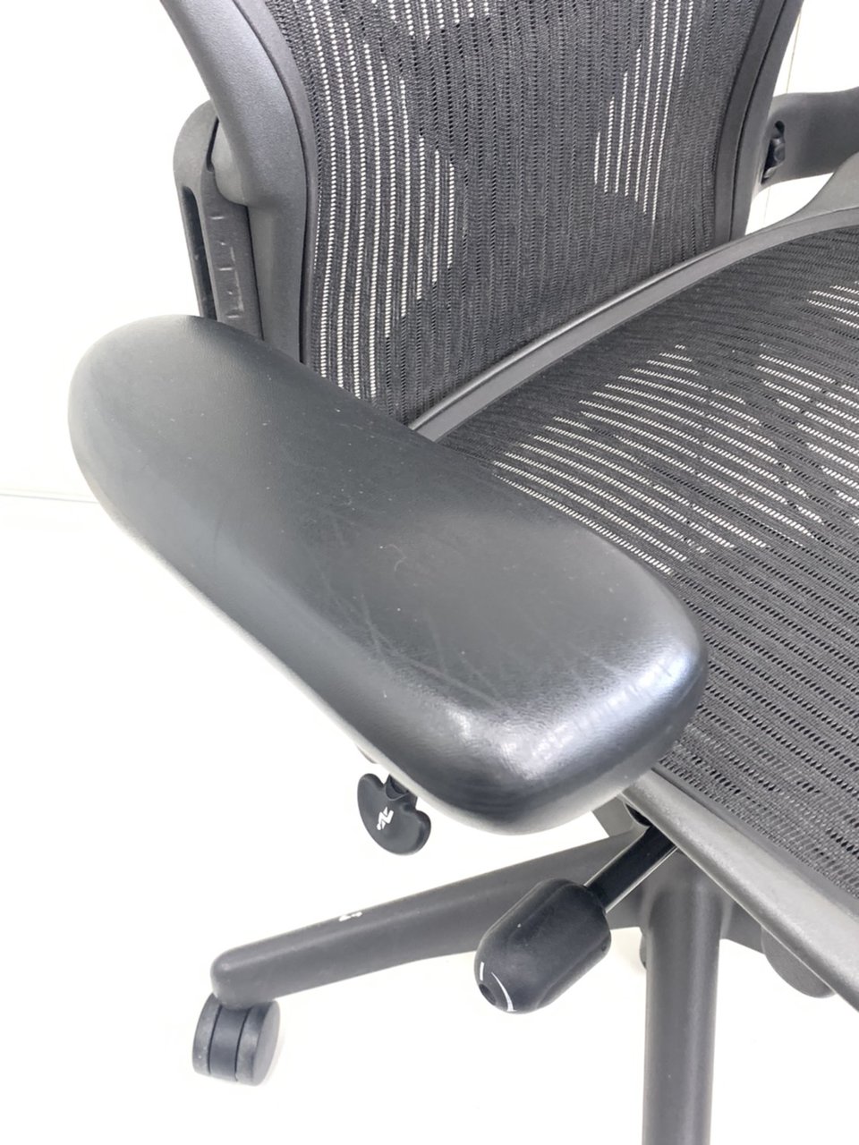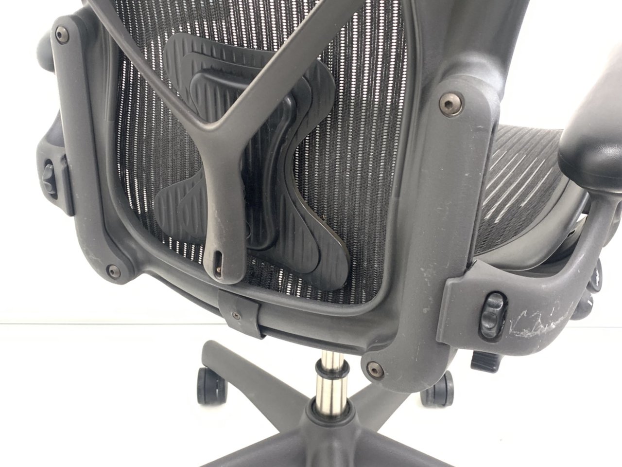 【★状態イマイチのためお安く!】■ハーマンミラー製 アーロンチェア Bサイズ 固定肘 ※キズあり・ランバーサポート無・昇降ガス圧弱めのためお安く!【訳あり特価品】
