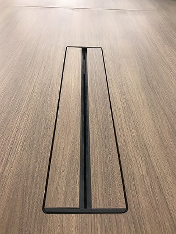 シャープで洗練された空間を演出する大型会議テーブル。