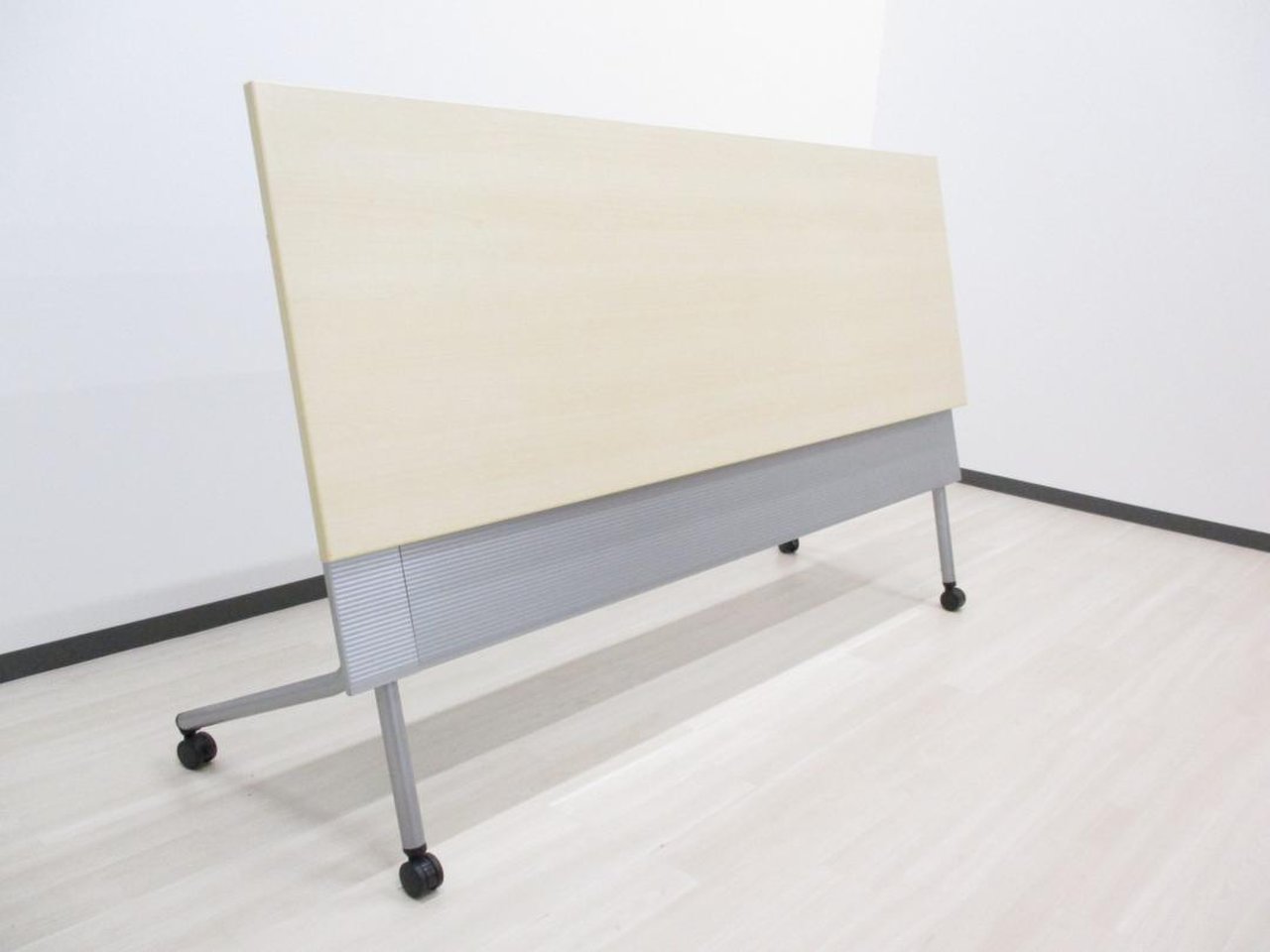 【定価約8万円】【天板ナチュラルカラーの人気サイドスタックテーブル!2~3人使用に最適!】■オカムラ(okamura)製 ネスティア(NESTIA)シリーズ サイドスタックテーブル フラップタイプ W1800×D600㎜ ■幕板付 ■木目ナチュラル