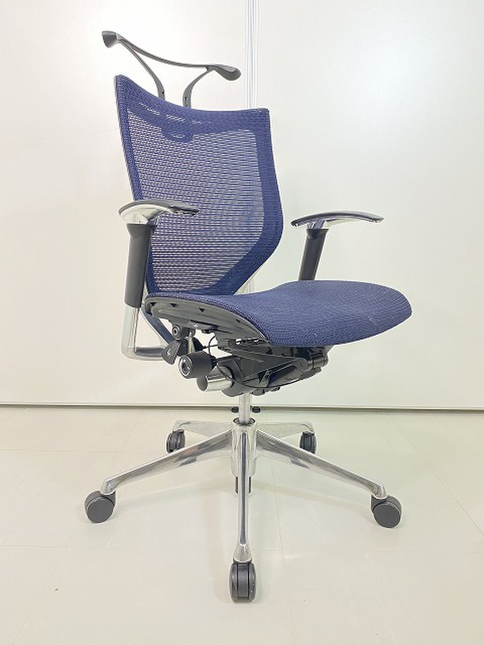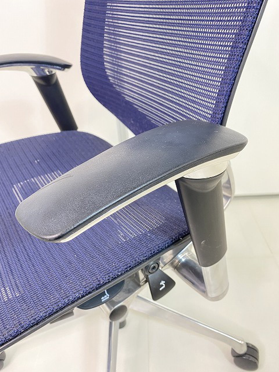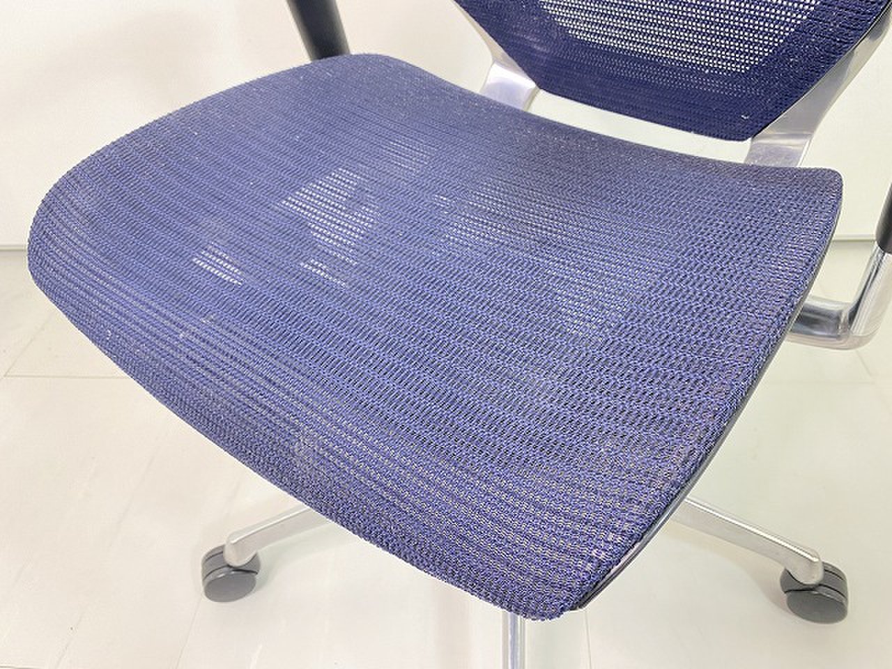 【座面が大人気!国産メッシュチェアの代表格!】■オカムラ(okamura)製 バロン(Baron)チェア ローバック 肘付き ■背面メッシュ ■固定肘 ■色:ダークブルー ■ハンガー付き