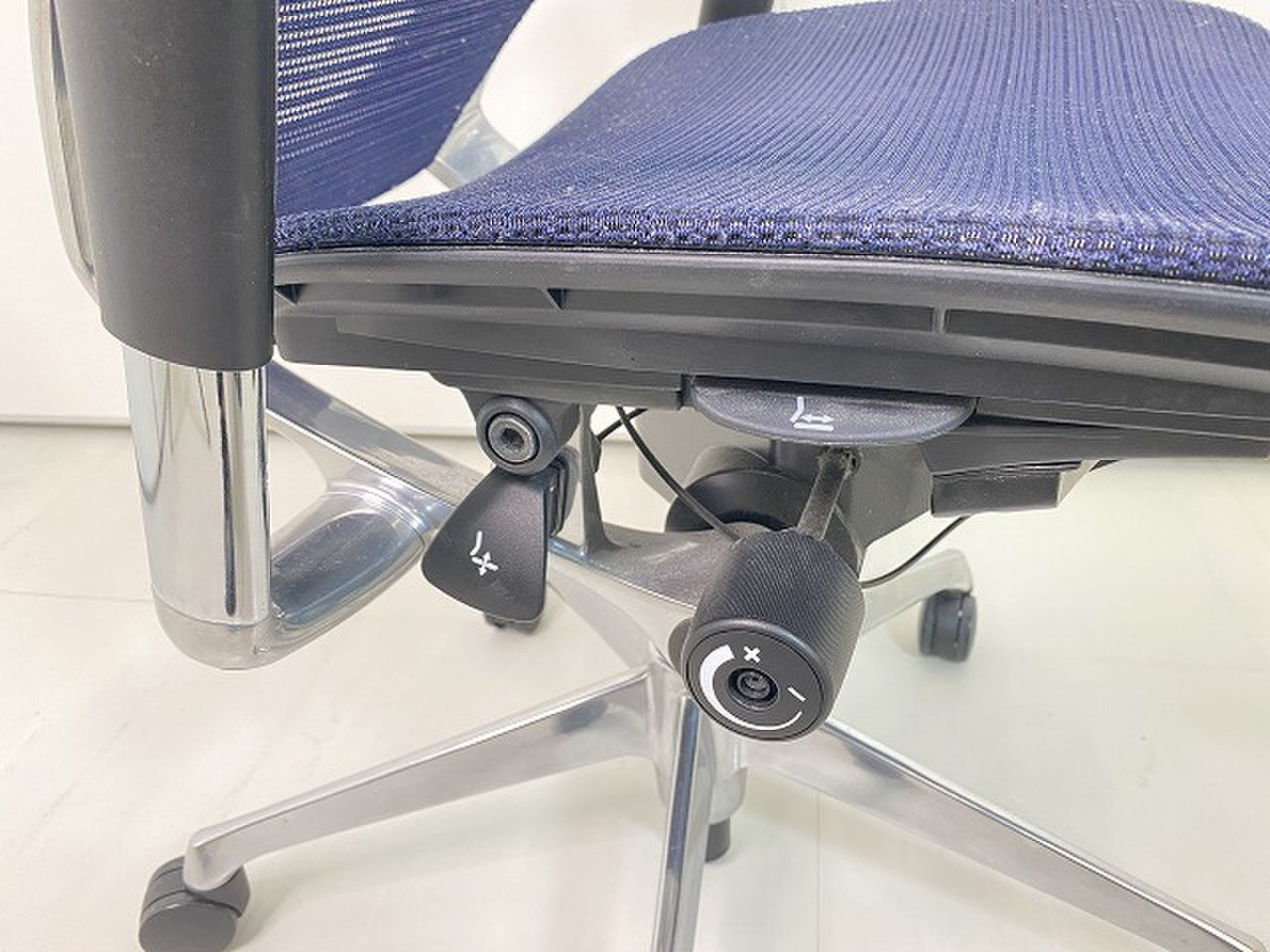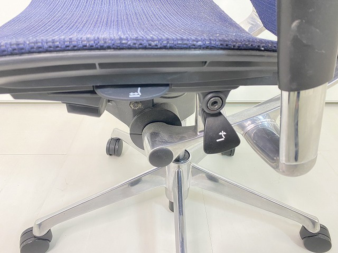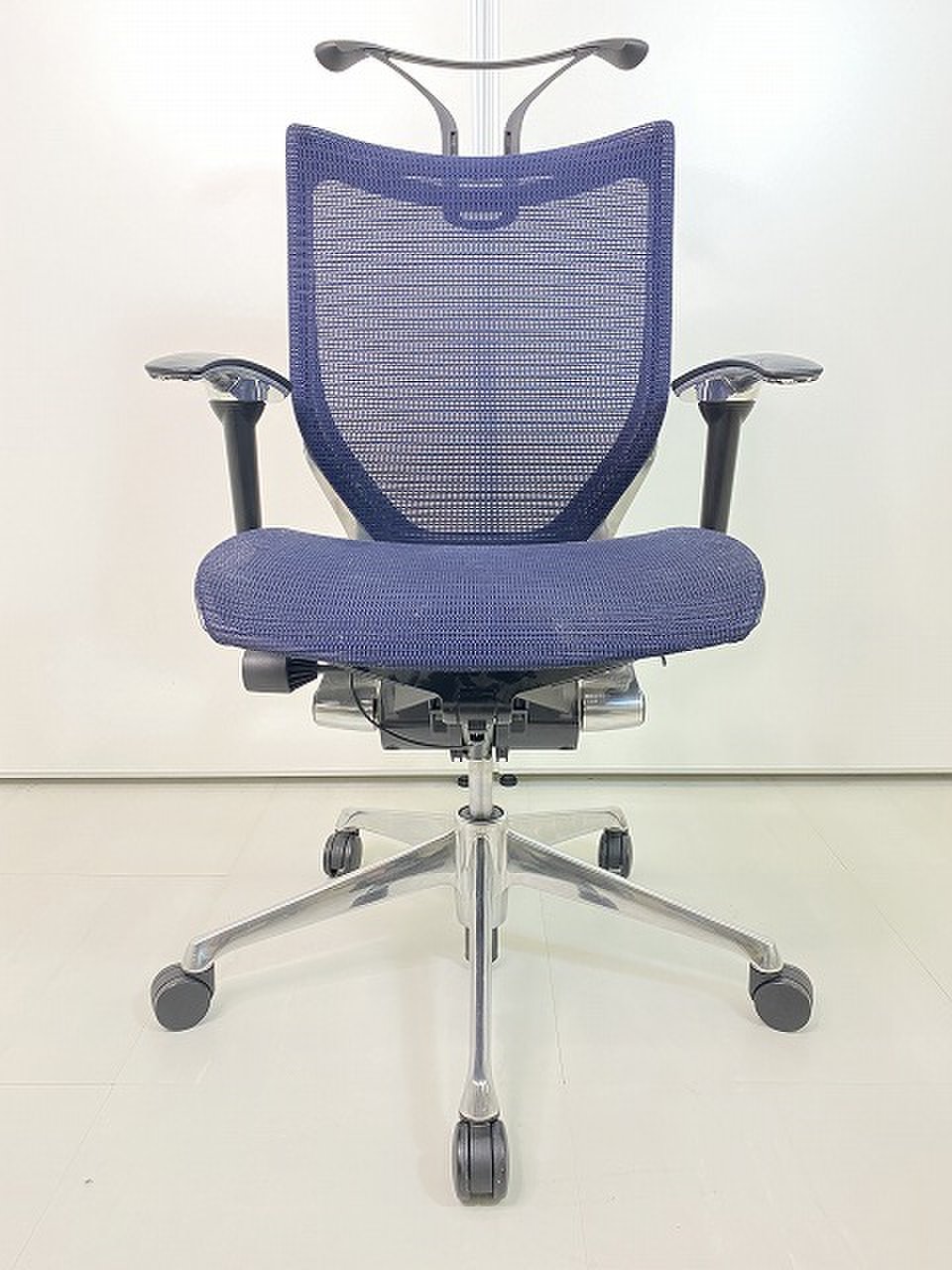 【座面が大人気!国産メッシュチェアの代表格!】■オカムラ(okamura)製 バロン(Baron)チェア ローバック 肘付き ■背面メッシュ ■固定肘 ■色:ダークブルー ■ハンガー付き