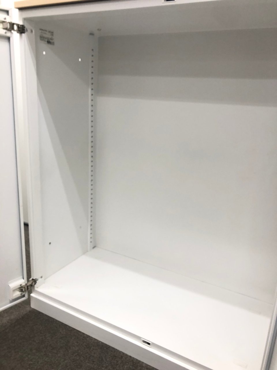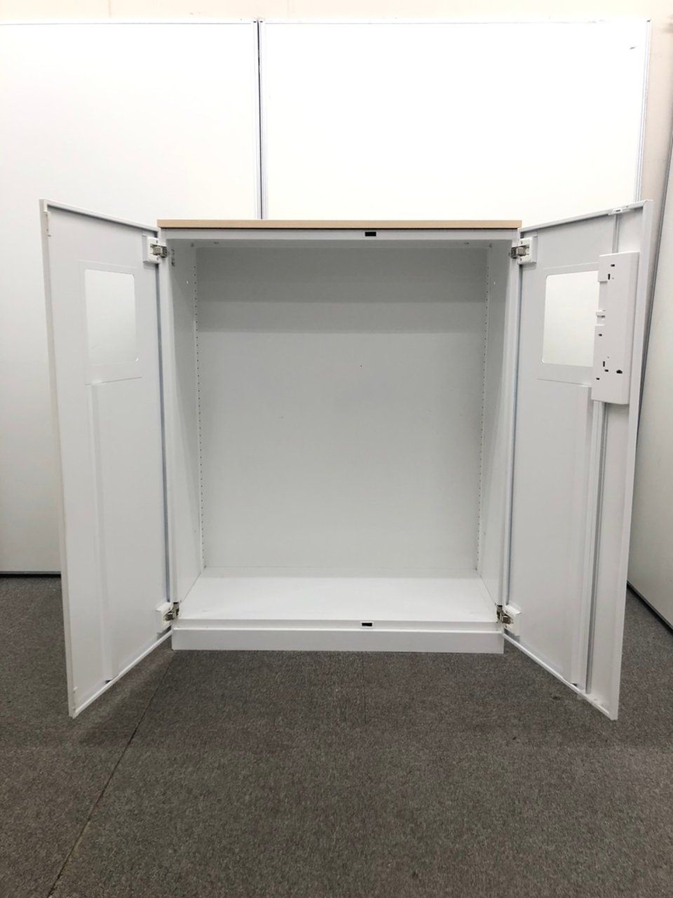 【収納物がひとめで分かる両開き戸タイプ!】■コクヨ(KOKUYO)製 エディア(EDIA)シリーズ 両開き書庫 ローキャビネット H1130㎜ ■天板・ベース付 ■ホワイト ■シリンダー錠【IB】
