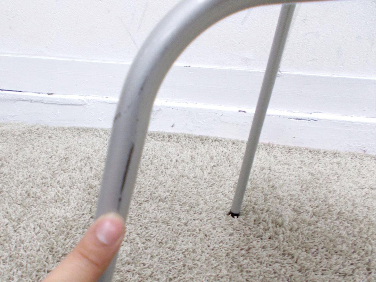 - かなり強い濃い黄ばみ・変色が商品全体にある。(例、座面・背もたれ、脚部等にある。)