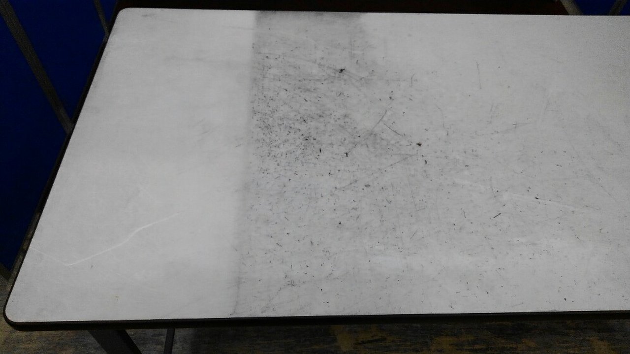 - 目立つ箇所あり傷・凹みが多数、深い傷・凹みが一部ある。(例、天板、正面、背部、サイド部分にある。)